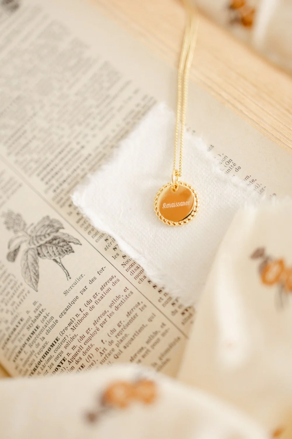 Notre collier personnalisé médaille Cordage au contour délicatement travaillé se personnalise avec vos précieux mots doux.