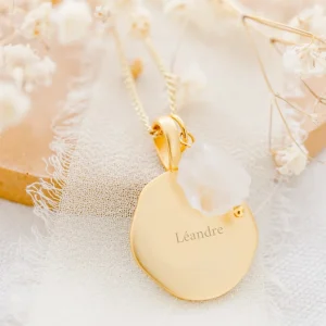 Notre pendentif rond personnalisé doré à l’or fin 18 carats se personnalise avec vos précieux mots doux. Nous rendons votre bijou unique en y gravant un prénom, des initiales ou tout autre mot d’amour.