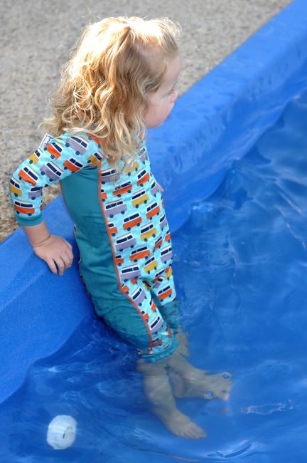 La combinaison de bain pop in possède aussi une protection solaire UPF50+ supplémentaire pour aider à protéger les tout-petits du soleil.