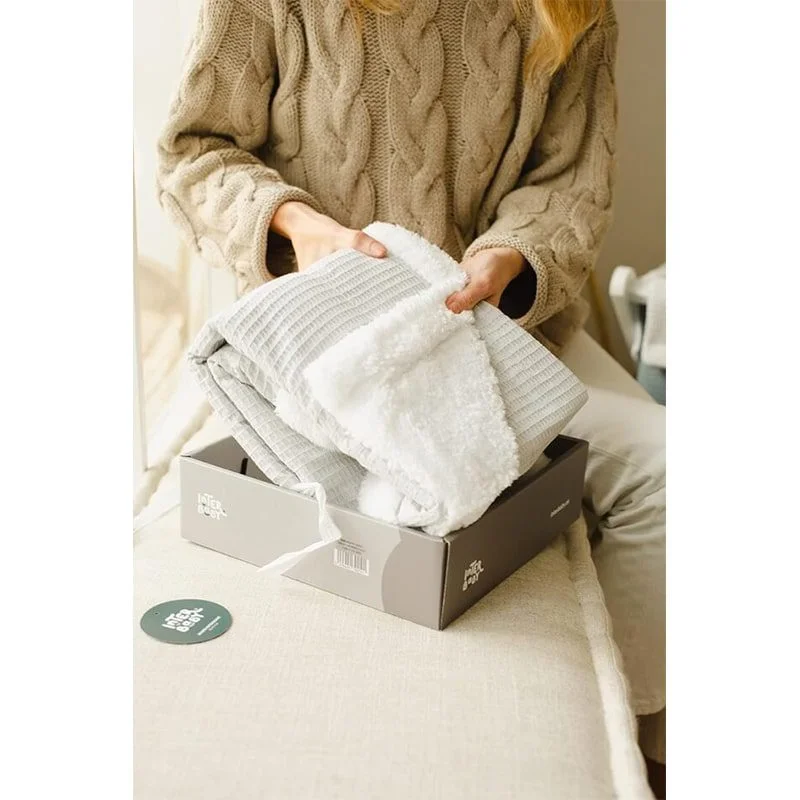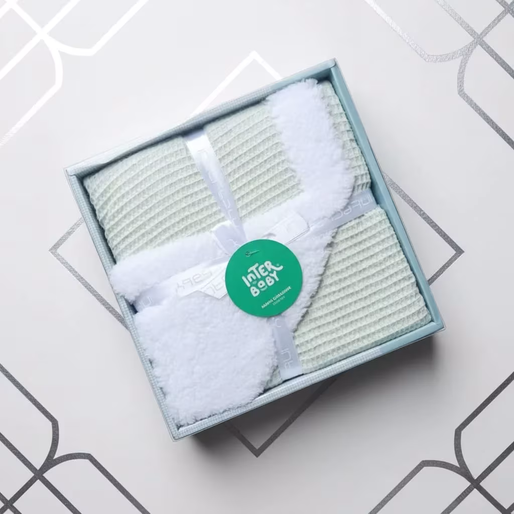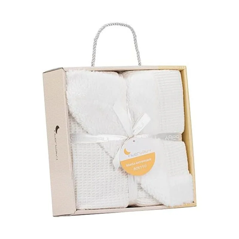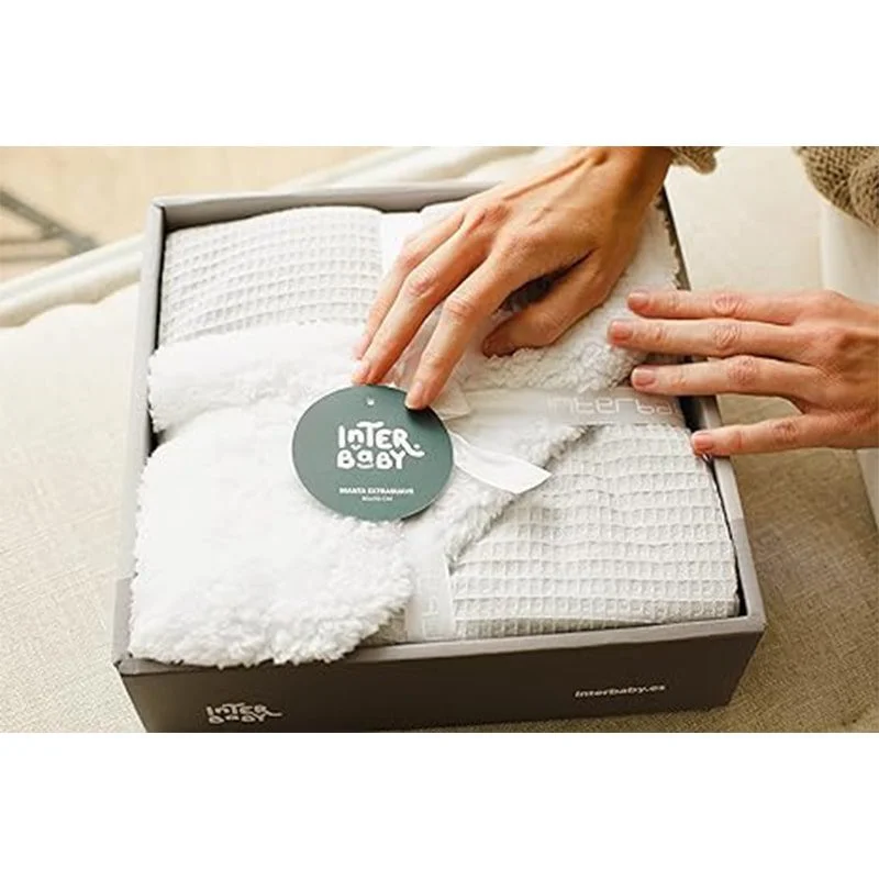 La couverture en nid d’abeille et agneau de la marque Interbaby, peut être utilisée dans le berceau, en promenade ou dans la voiture.
