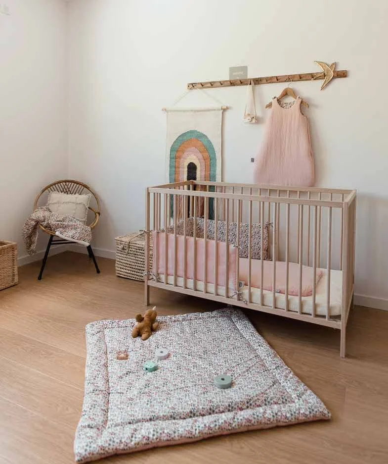 - Coton à motifs fleuris rose certifié sans substance nocive ou irritante.