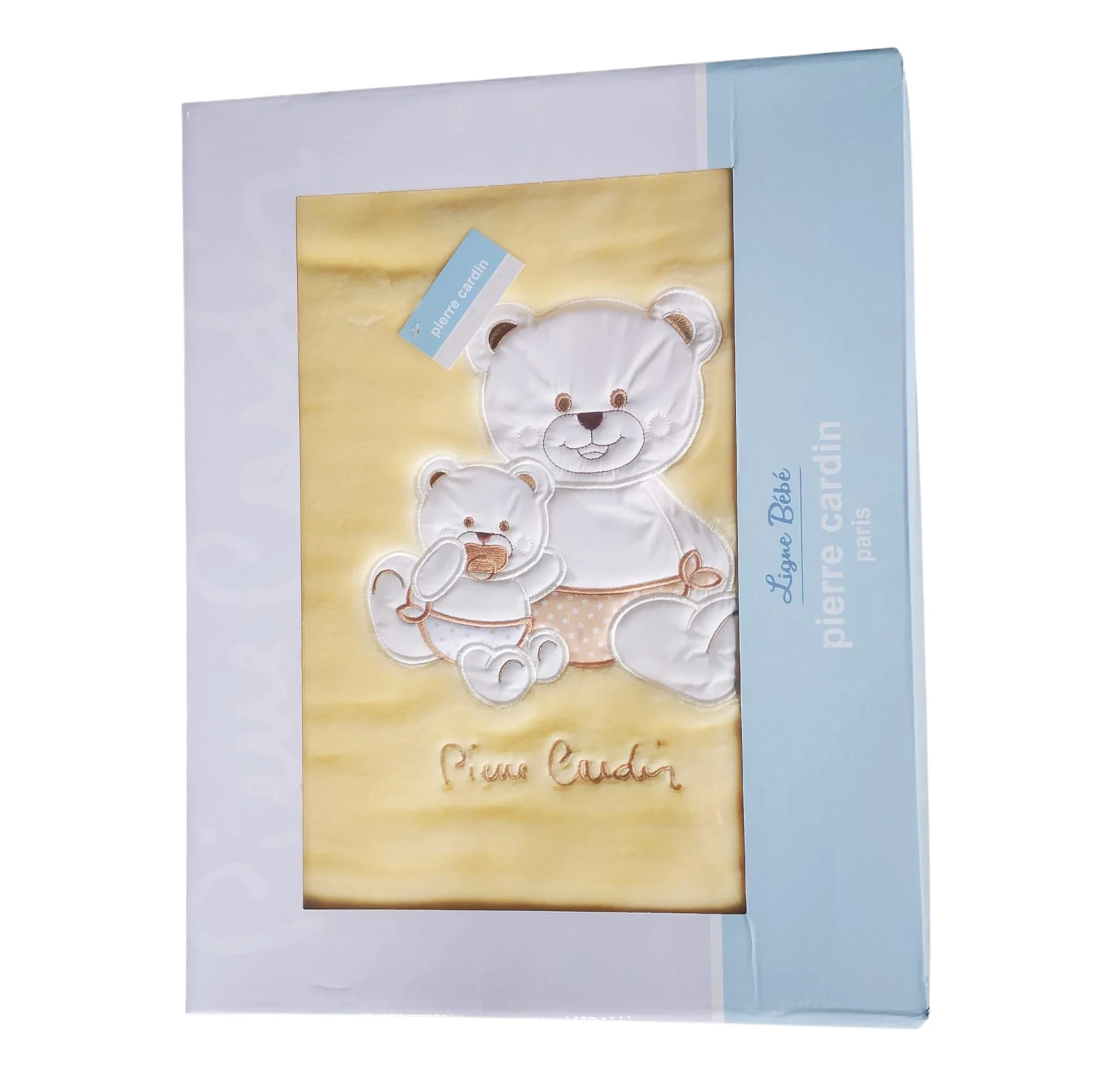 Couverture Ours 110×140 cm – Pierre Cardin, en tissu polaire épais, doux et moelleux ornée d’un magnifique ourson, tiendra votre bébé bien au chaud pendant son sommeil.