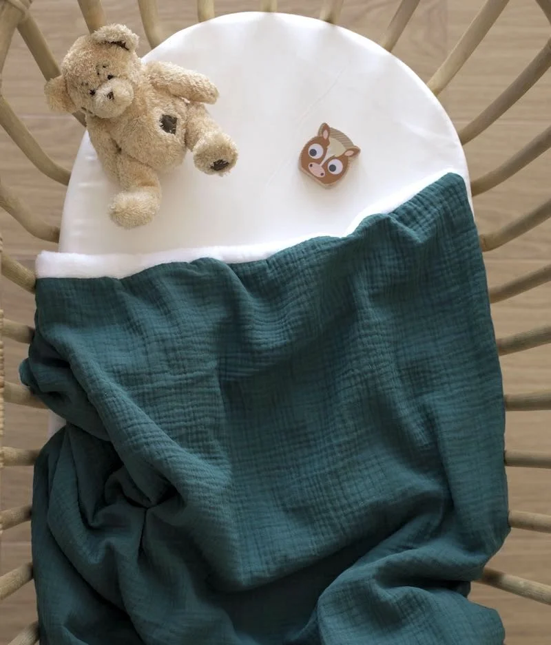 La couverture bébé en double gaze de coton vert sapin vous suivra dans toutes vos aventures ! Incroyablement douce et moelleuse, notre jolie couverture fera le bonheur de bébé.