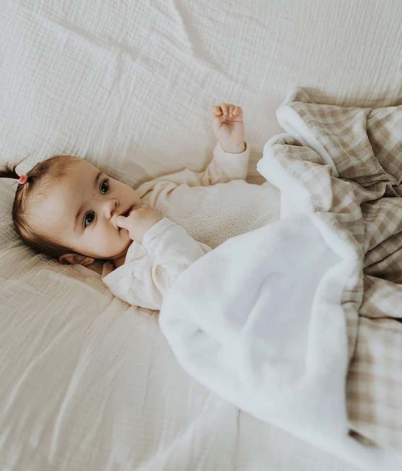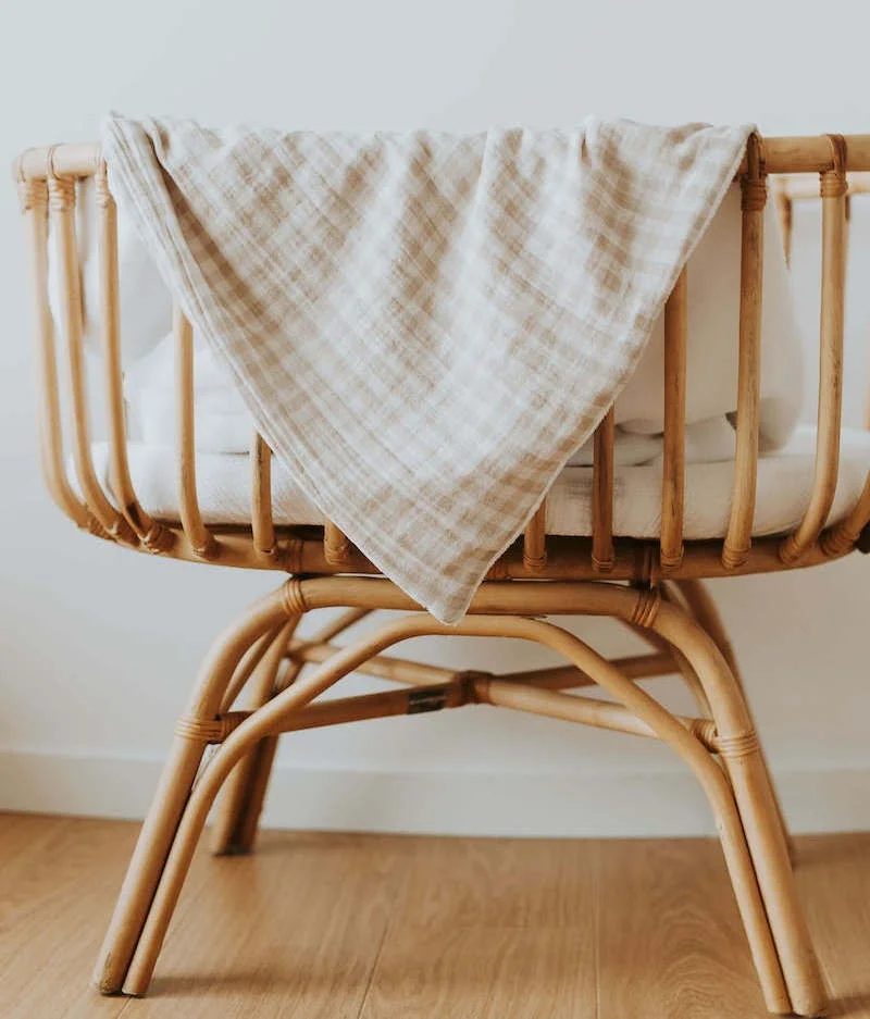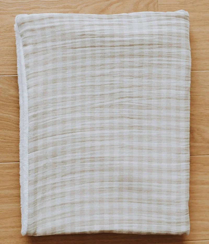 - Double gaze de coton vichy couleur galet certifiée sans substance nocive ou irritante.