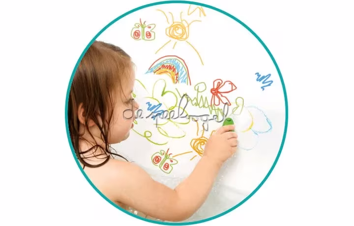 Les enfants peuvent écrire des chiffres et des lettres, améliorer leur orthographe ou simplement laisser libre cours à leur imagination en gribouillant et en dessinant ce qu’ils veulent sur les surfaces lisses et humides comme la baignoire ou les carreaux.