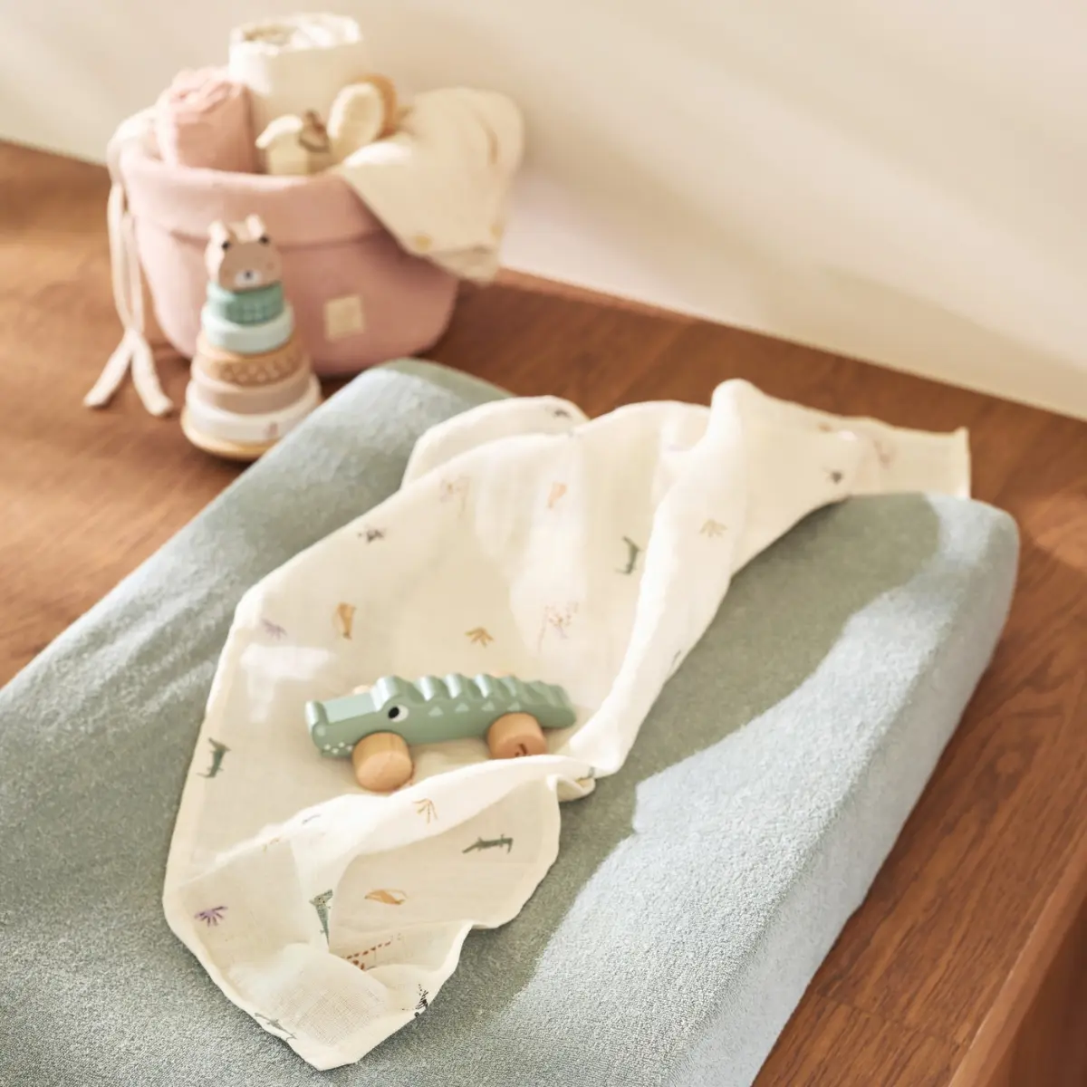 Parfait pour stimuler les déplacements et les envies d’exploration, ce crocodile roulant est un petit classique indémodable… avec une touche Jungle Jambo.