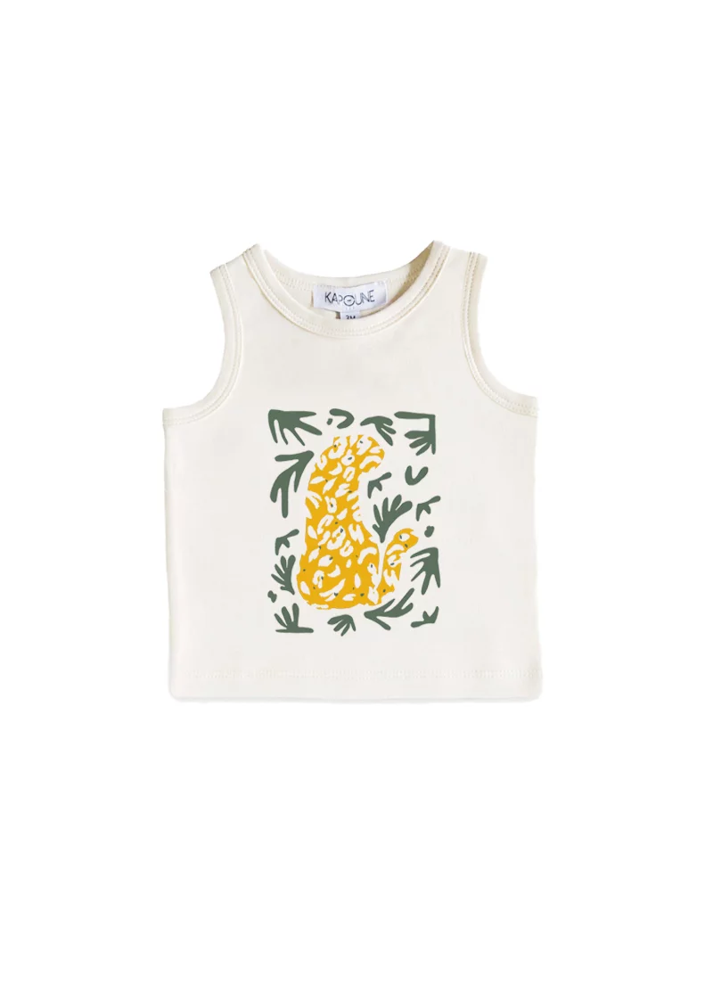 Et si on ajoutait un peu de graou dans le dressing de nos minis cet été ? Découvrez notre débardeur PANTHER, orné de couleurs vives parfait pour cet été!