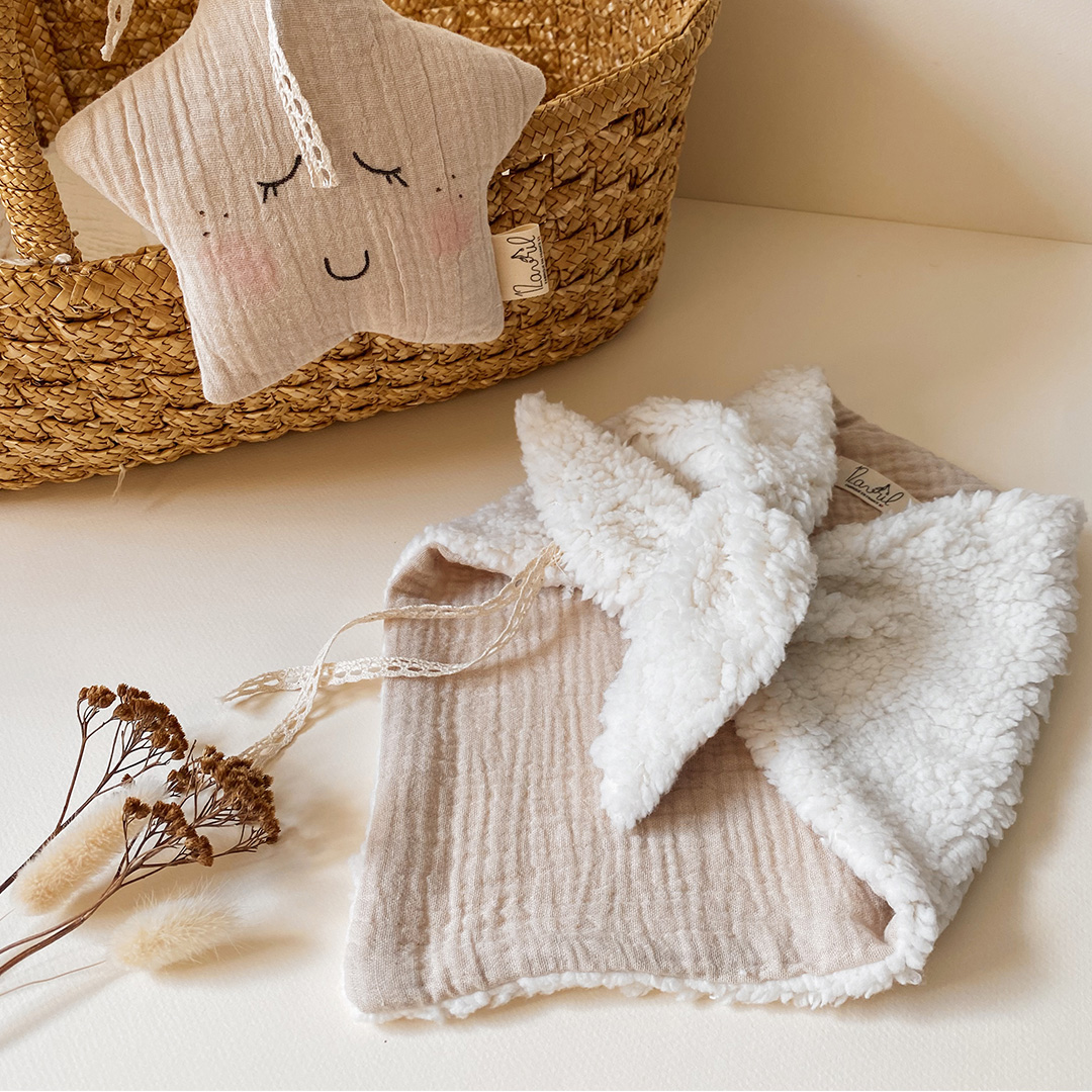 Doudou Lange Charly – Fausse fourrure et triple gaze de coton