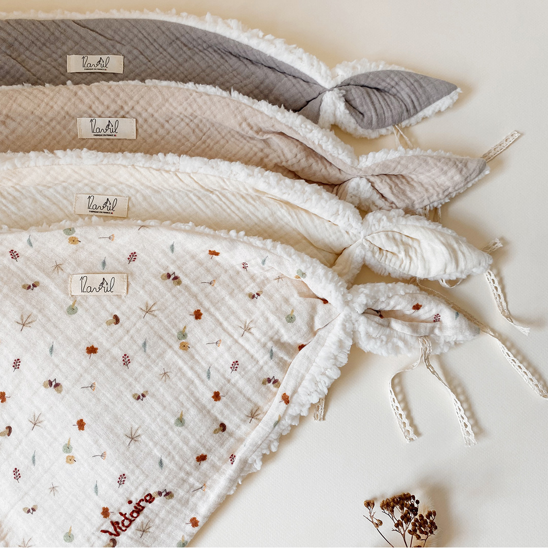 • Matières : Fausse fourrure et triple gaze de coton (100%)