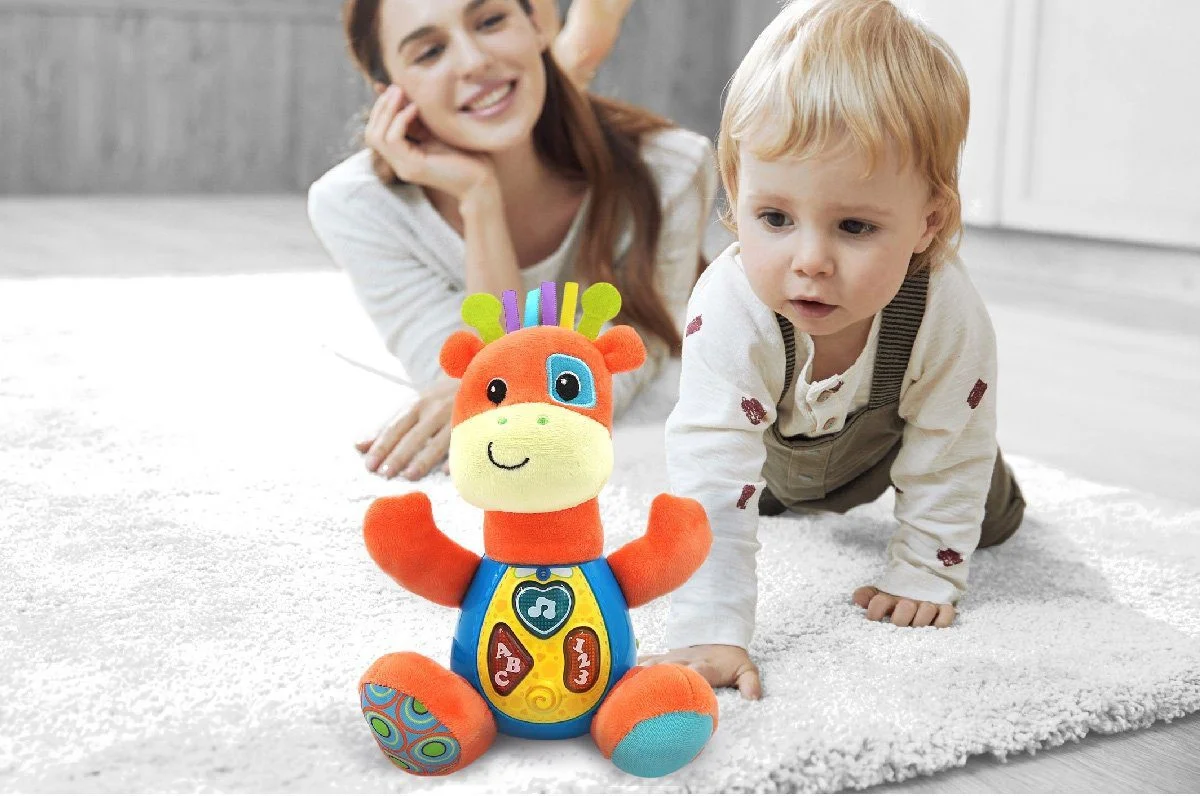 Doudou girafe musicale Winfun est un véritable bijou pour éveiller les sens de votre bébé. Avec ses couleurs chatoyantes, sa texture douce et son motif animalier adorable, il ne manquera pas de susciter la curiosité naturelle de votre enfant à tout moment du jour ou de la nuit.