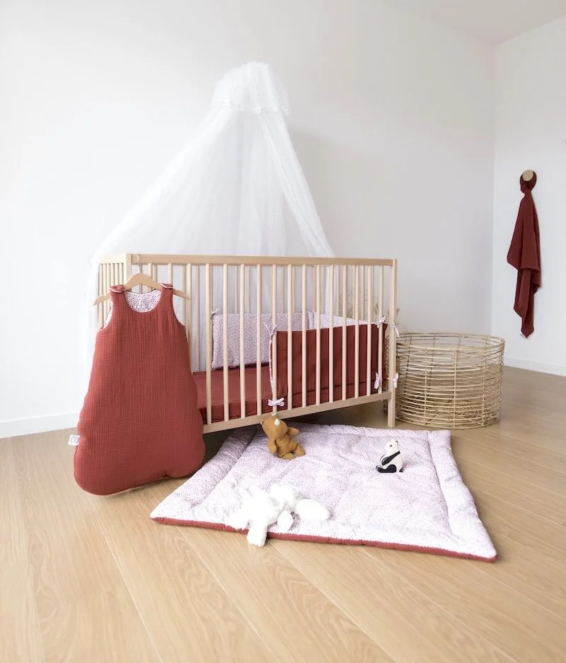 Transformez le lit de votre bébé en un cocon douillet avec notre drap house en double gaze de coton tomette. Cette matière confère la douceur du coton et la beauté du lin.