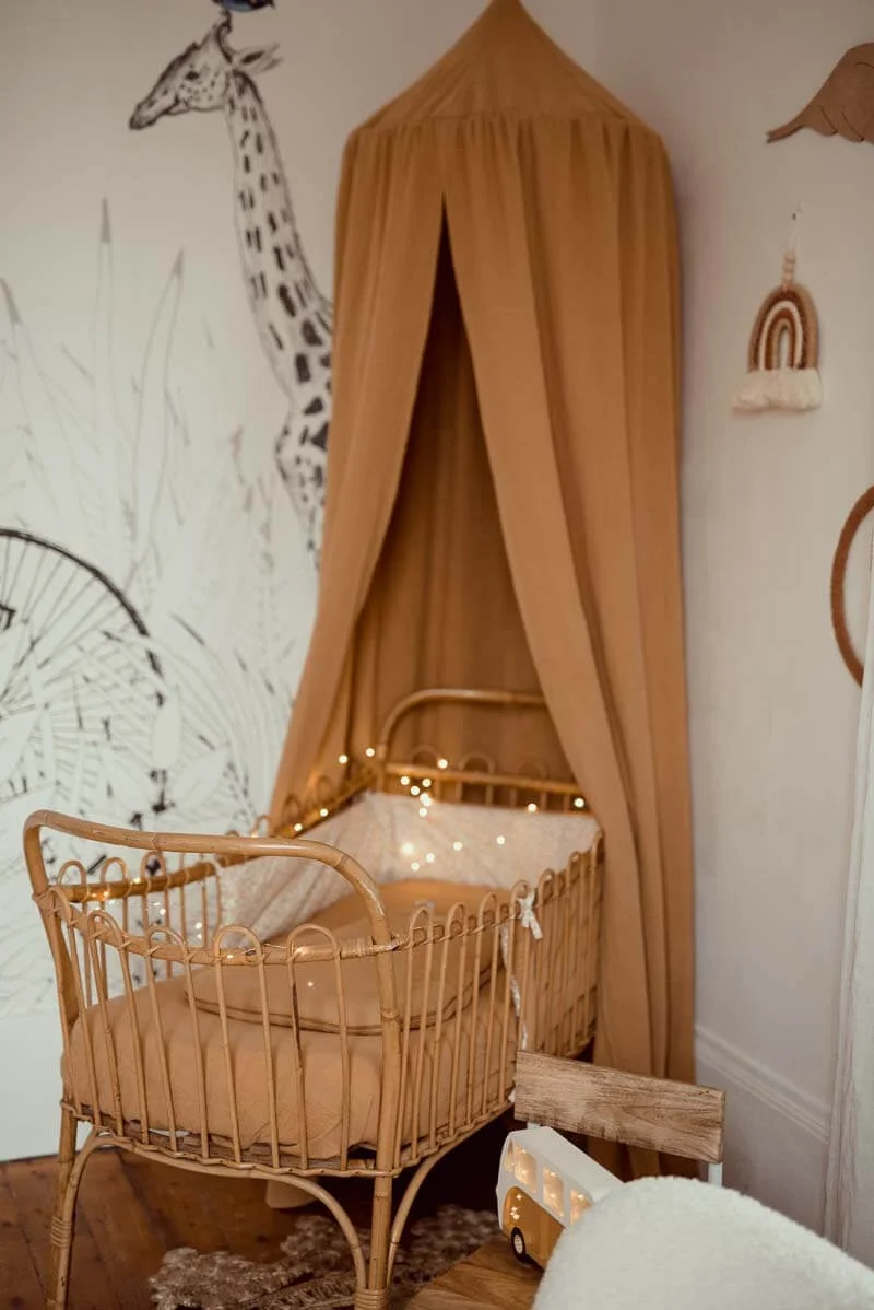 - Extérieur en double gaze camel et intérieur en coton caramel à motifs fleuris certifiés sans substance nocive et ouate hypoallergénique.