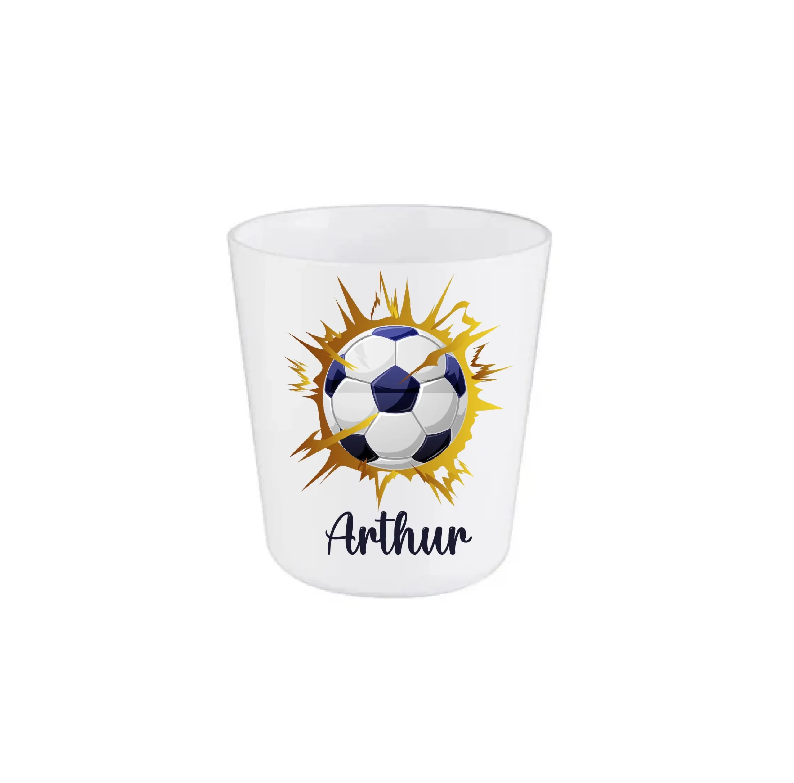 Ce gobelet au visuel percutant avec ballon de football en pleine explosion est idéal pour les jeunes fans de sport.