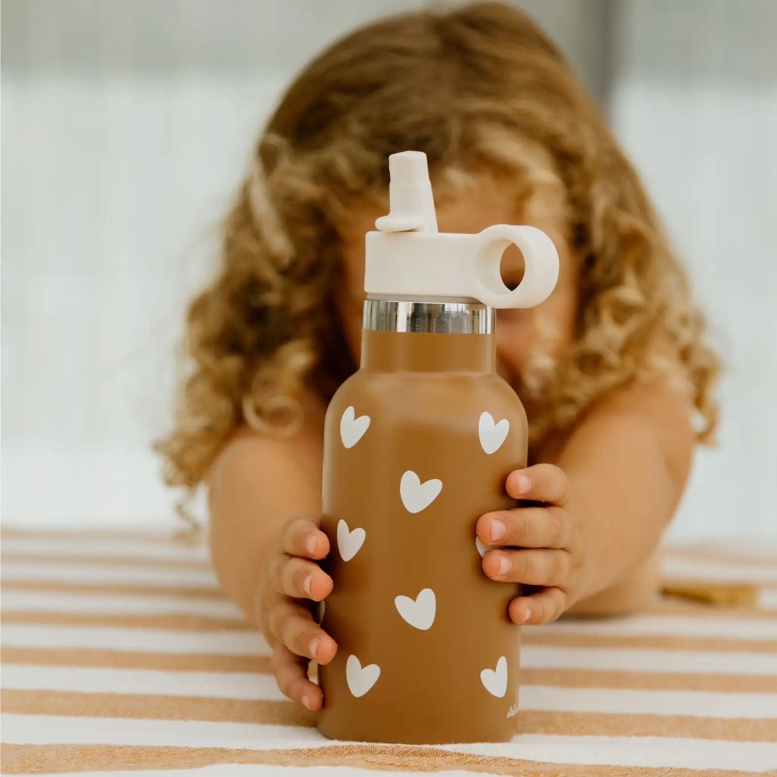 La gourde en acier inoxydable Caramel est idéale pour conserver les boissons chaudes ou froides jusqu’à 8 heures. Son format compact et sa paille intégrée en font un accessoire pratique au quotidien pour les enfants comme pour les parents.