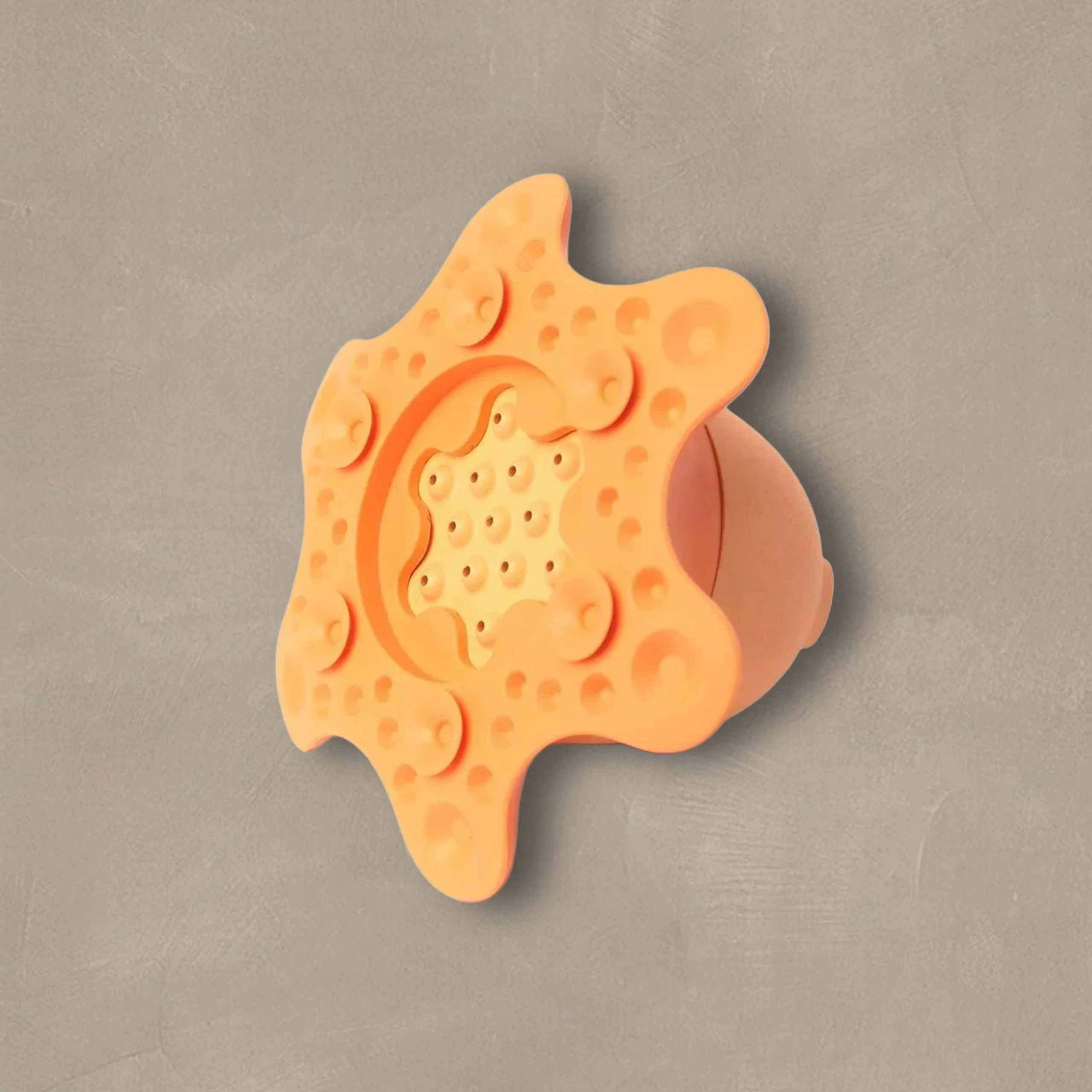 - Ses ventouses ludiques permettent de le coller et de le décoller à l’infini sur toutes les surfaces. Elles sont aussi très agréables à toucher et à manipuler.