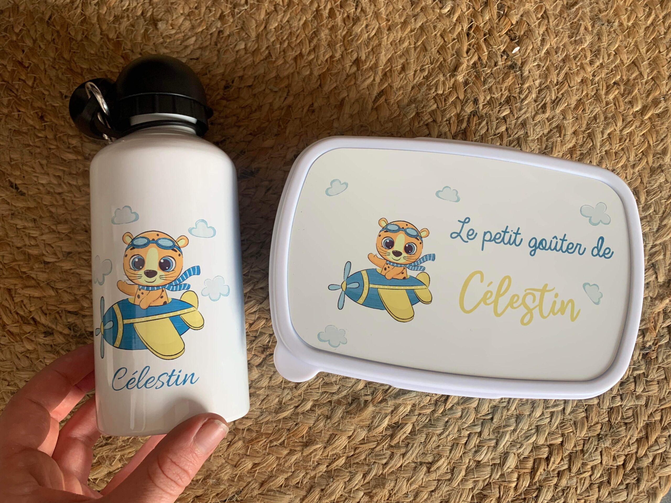 Plongez dans un monde enchanté avec notre ensemble : une gourde en acier inoxydable de 500 ml et une boîte à goûter assortie qui émerveilleront les petits rêveurs. Personnalisé avec le prénom de l’enfant, cet ensemble offre une dose de féérie à chaque gorgée et collation.