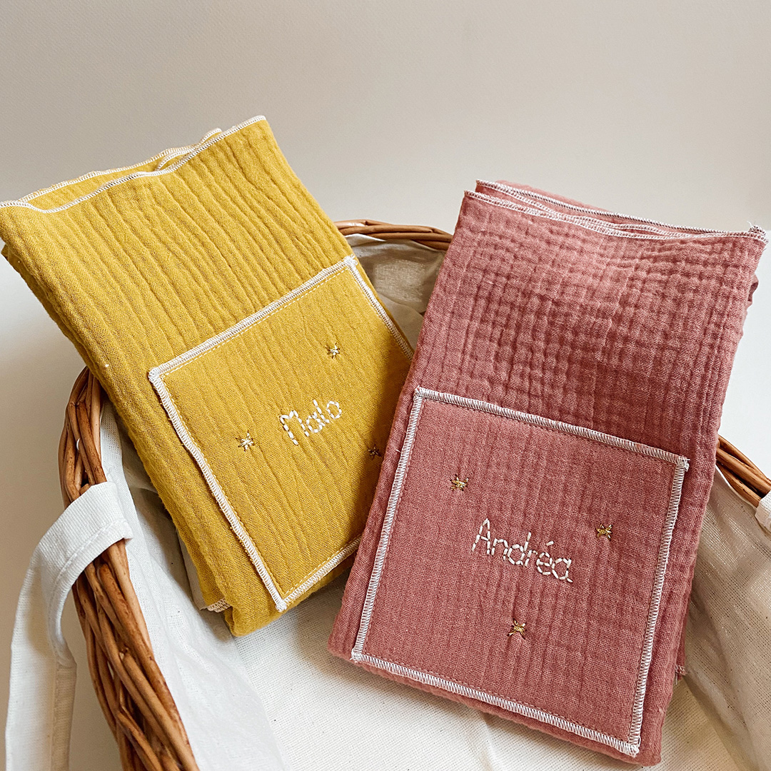 Ce lange ou petite couverture d’été est réalisé en 100% triple gaze de coton labellisée Oekotex, sans produits chimiques.