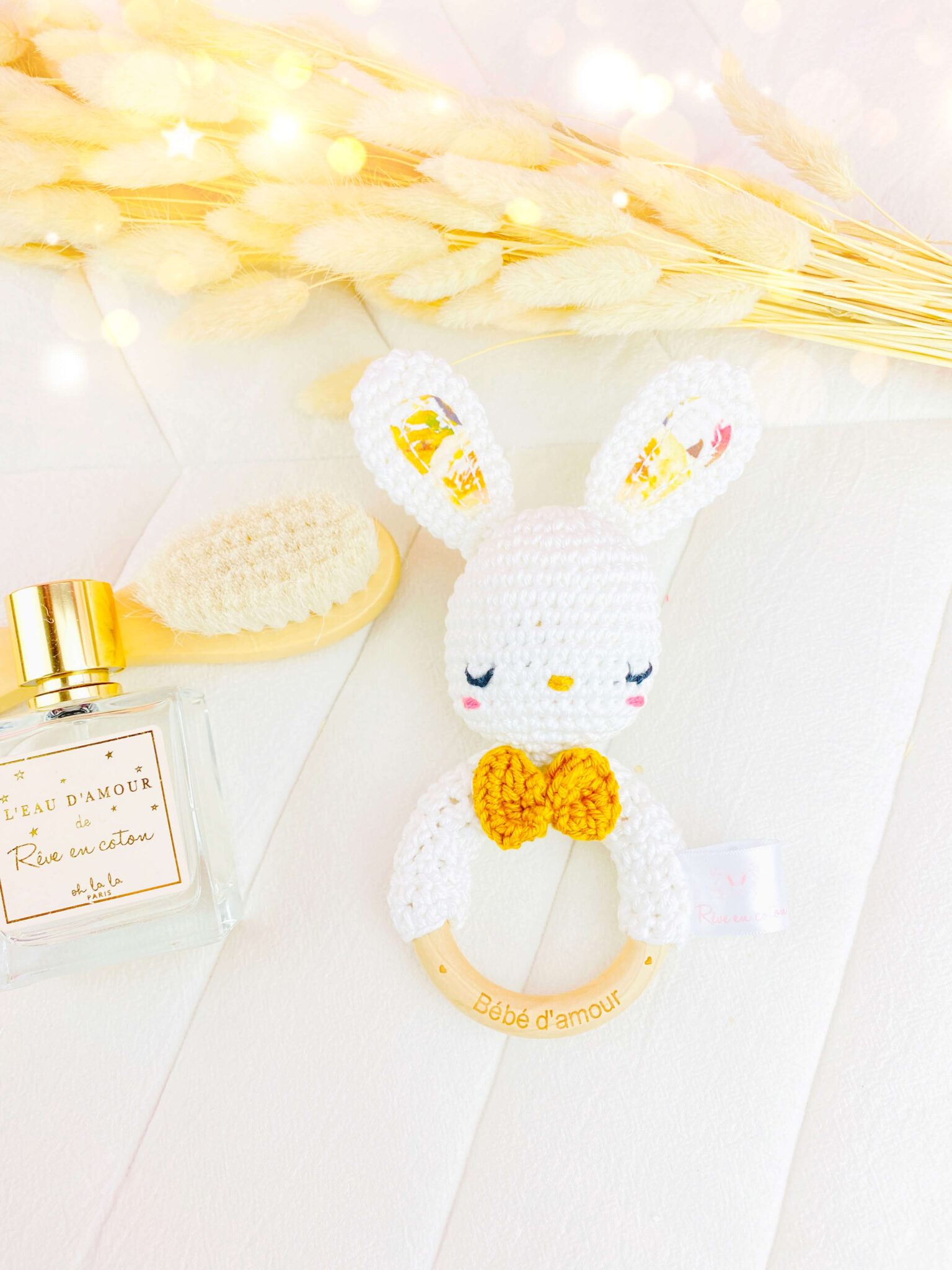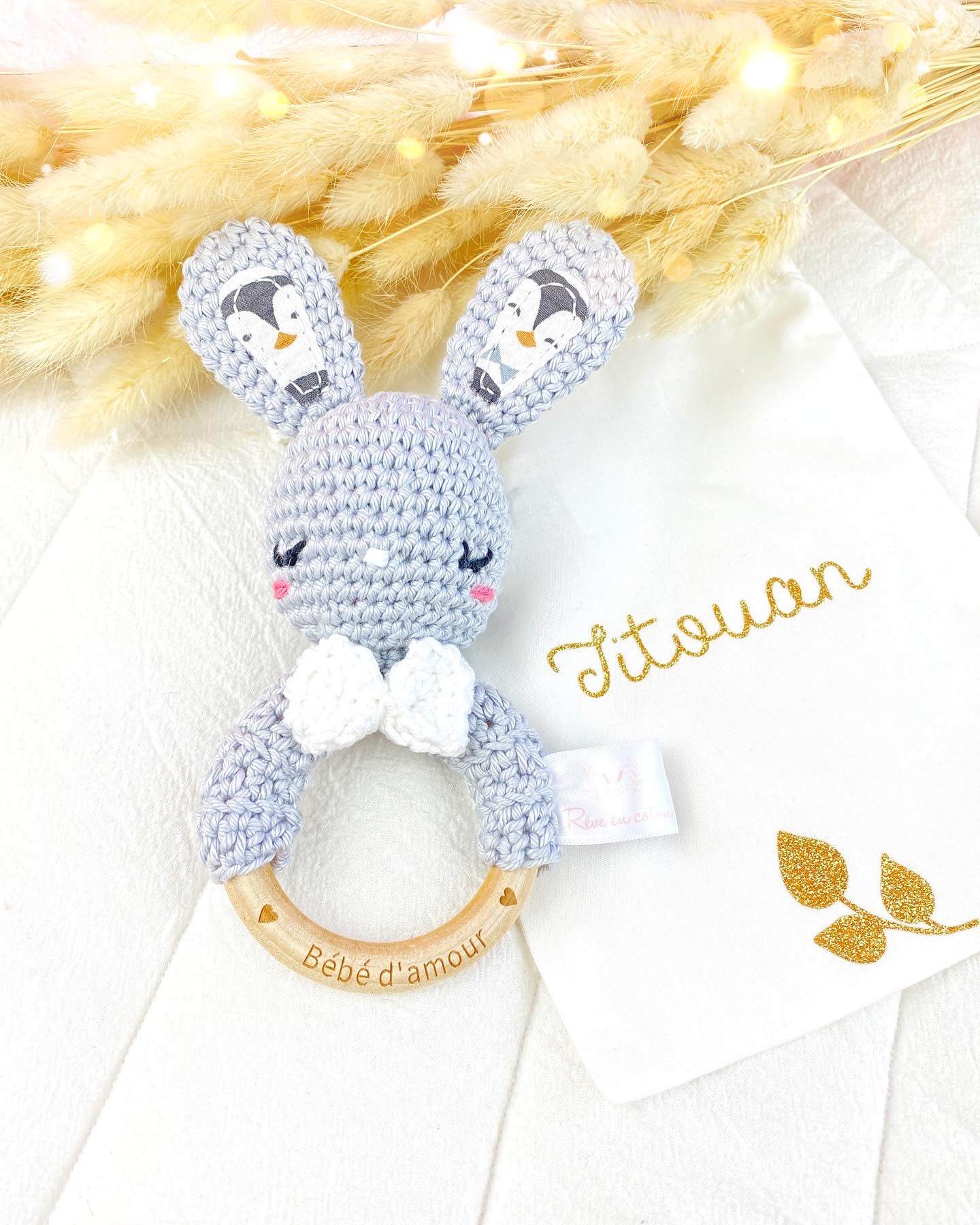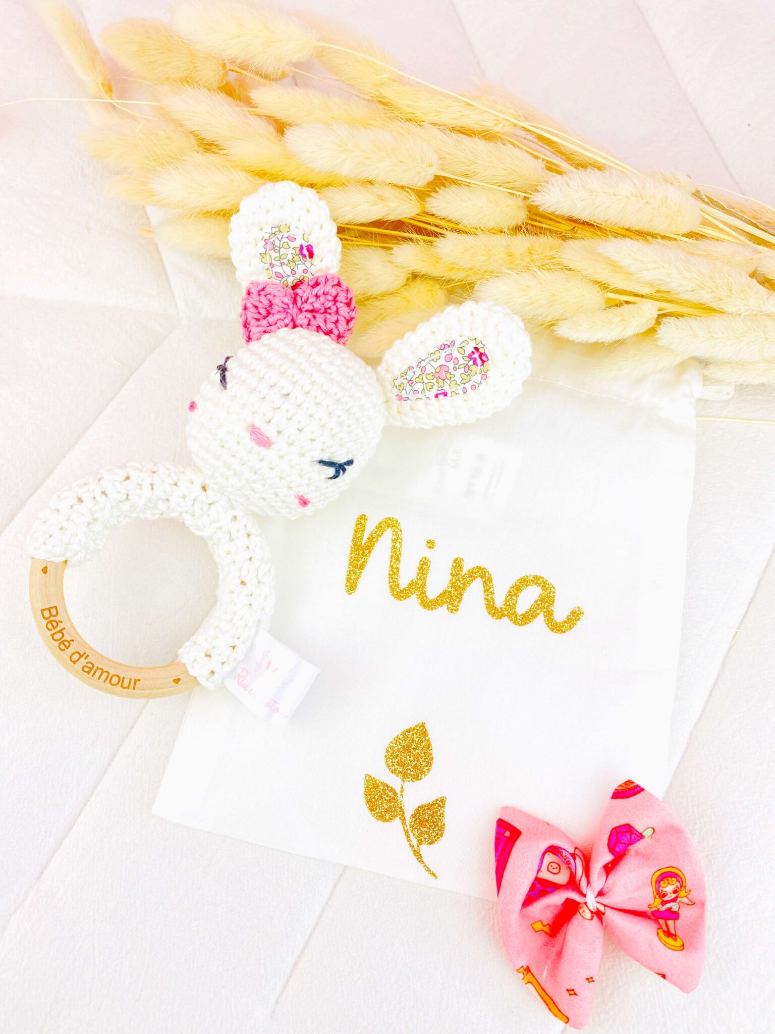 - Chaque commande étant réalisée à la main, votre hochet aura un caractère unique car ne sera pas tout à fait identique à cette photo.