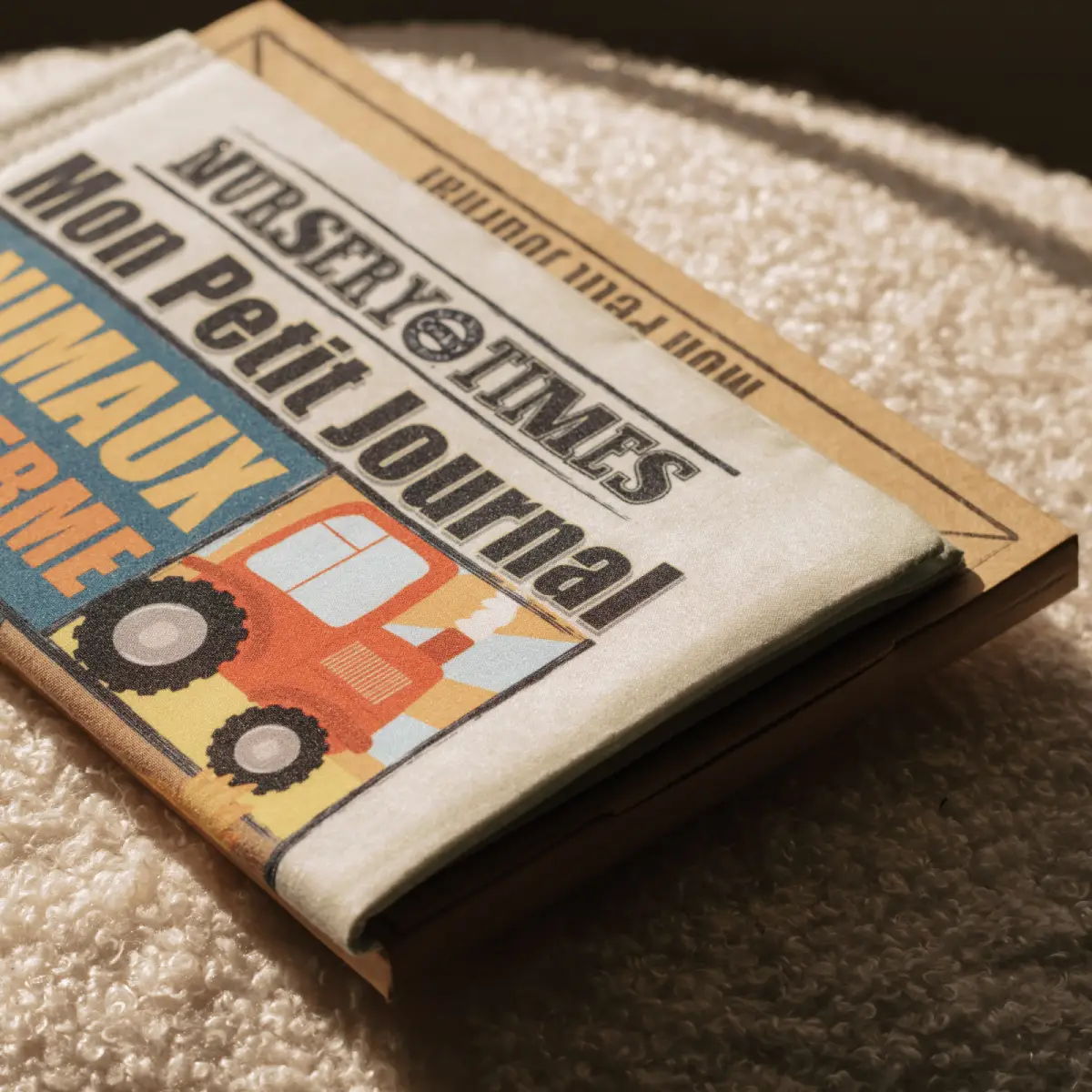 - Contenu : 1 livre bébé en tissu + 1 enveloppe de rangement