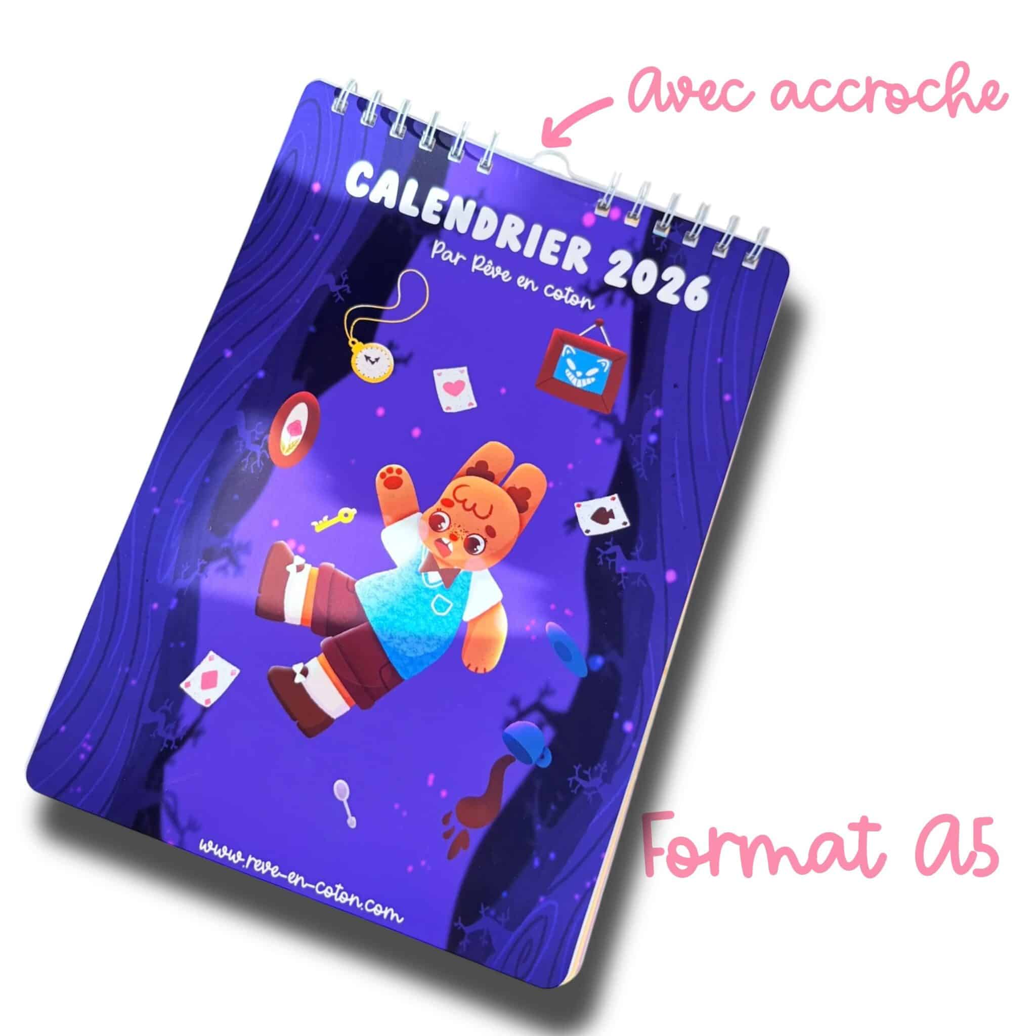 - Un petit calendrier 2026 format A5 imprimé sur un papier Mat 170 grammes