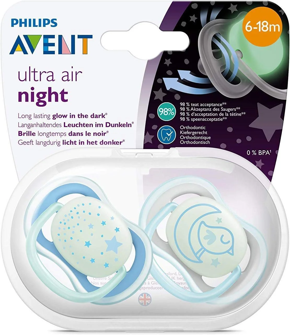- Lot de 2 sucettes ultra air night Avent garde la peau sensible de votre bébé sèche tout en le réconfortant