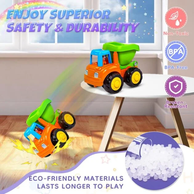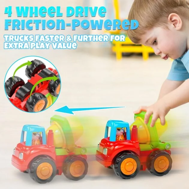 - Véhicules variés : Ce lot comprend un camion à benne, une pelleteuse et une bétonnière, permettant aux enfants d’explorer différents rôles sur un chantier.