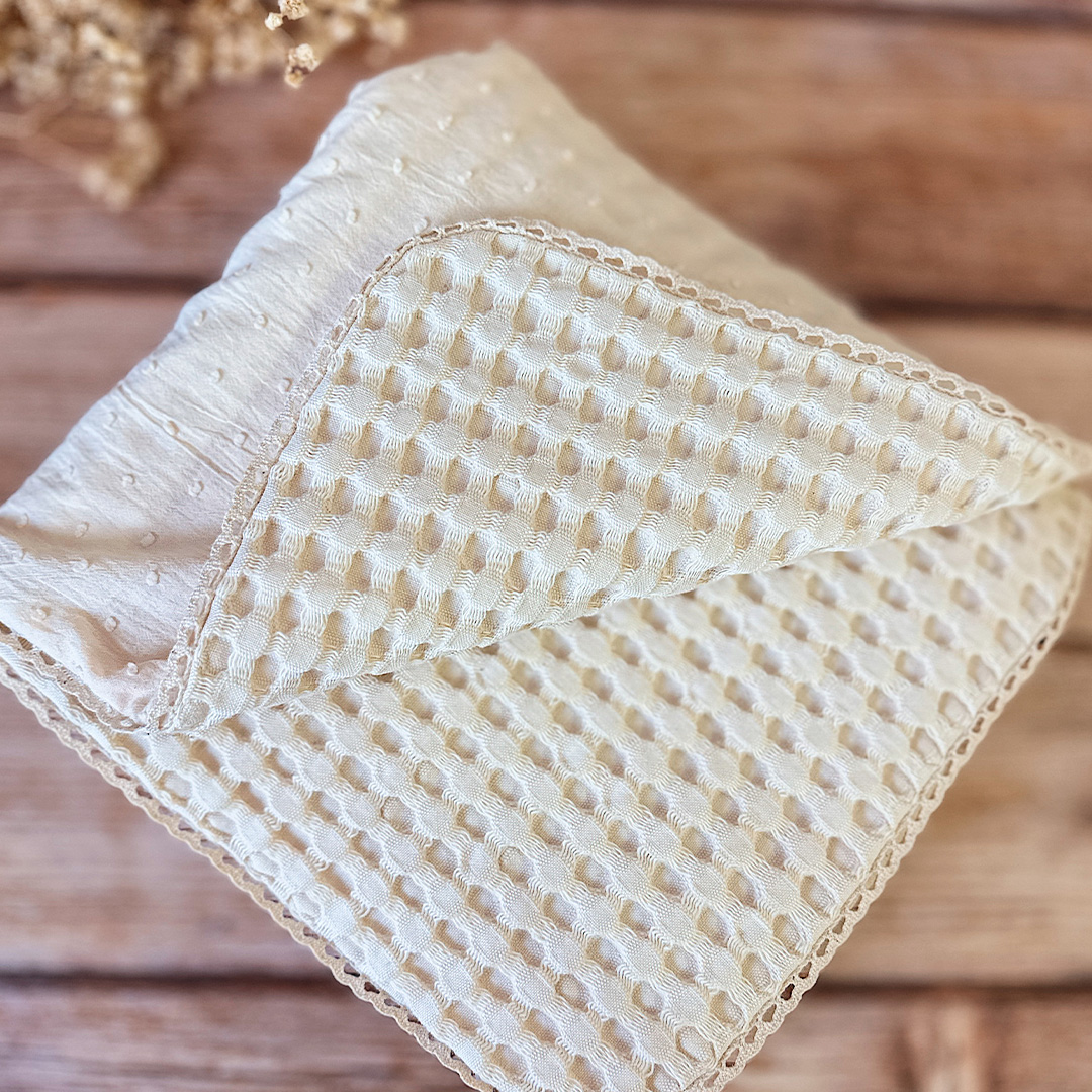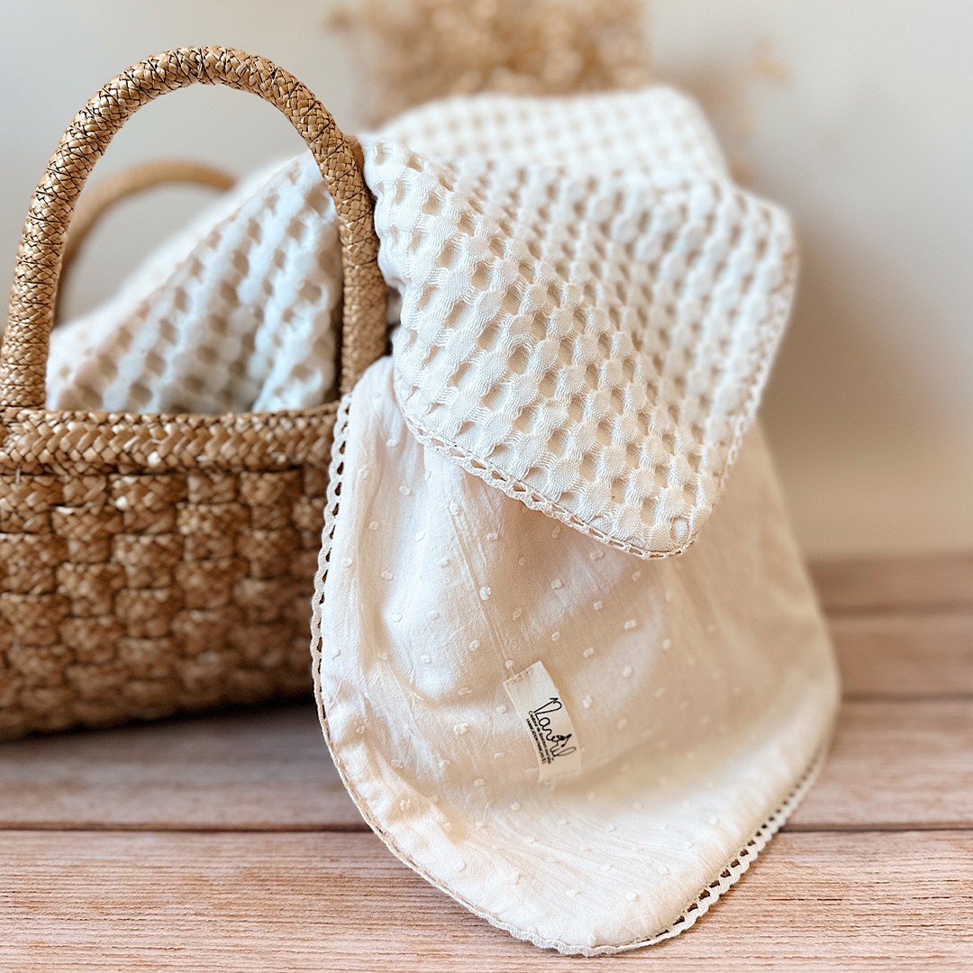 Couverture d’été personnalisée unie en popeline de coton plumetis et nid d’abeille géant – 100% fait main