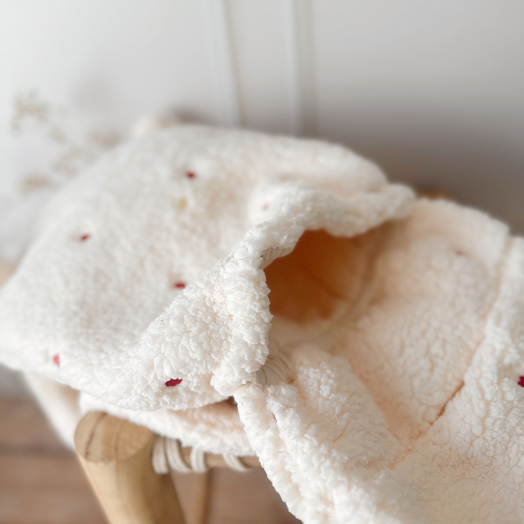 Fabriqué en sherpa brodé, il assure le confort de votre bébé tout en étant doux et léger au porter;.