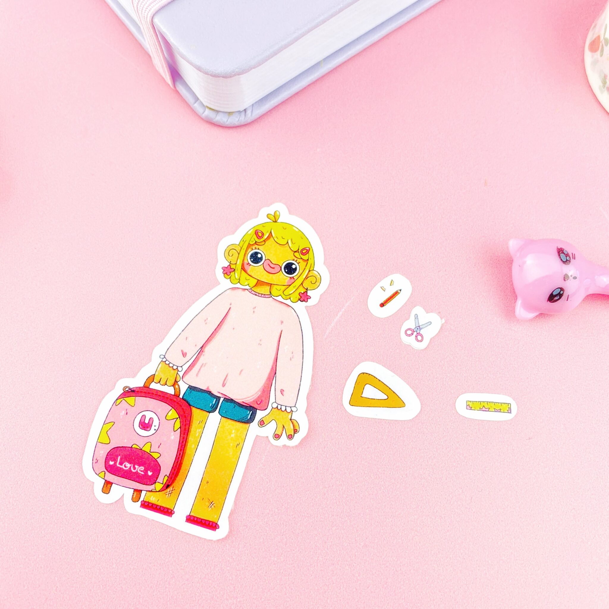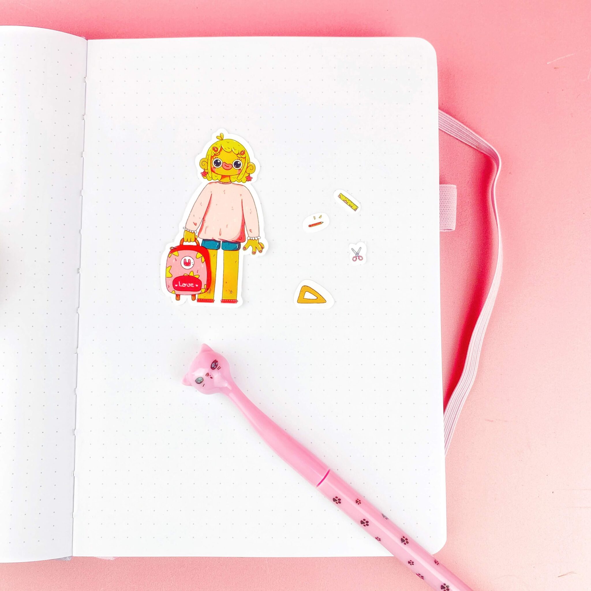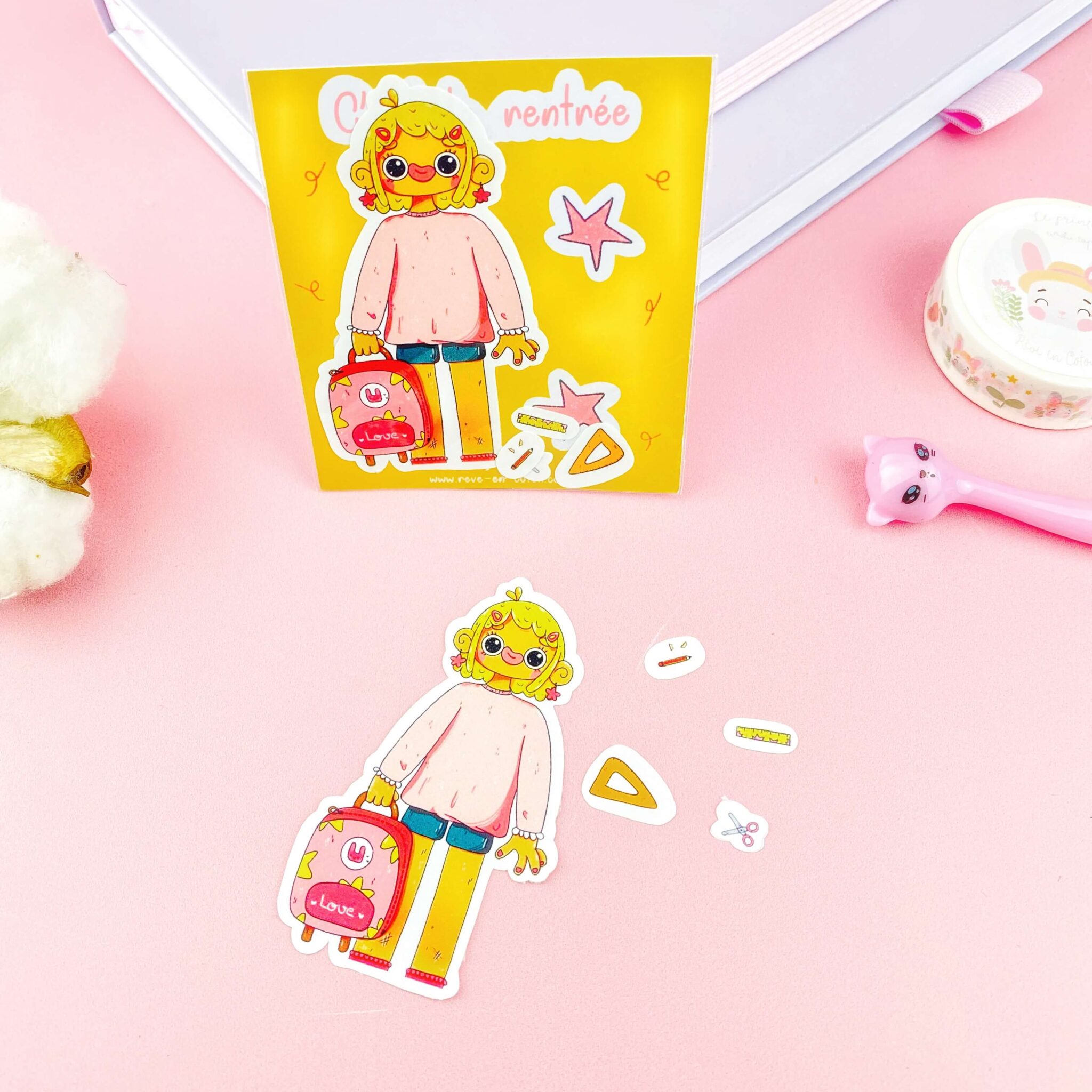 Pour l’occasion j’ai eu envie de dessiner un petit pack d’autocollants trop mignons à coller sur les agendas, cahier de texte, ou sur le planning de la maison pour égayer un peu tout ça.