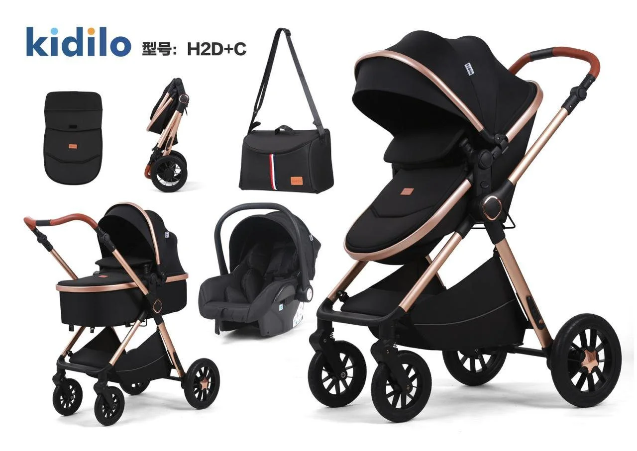 Pack poussette réversible Multifonctions 3en1 noir – Kidilo, conçu pour offrir le meilleur confort et sécurité à votre bébé.