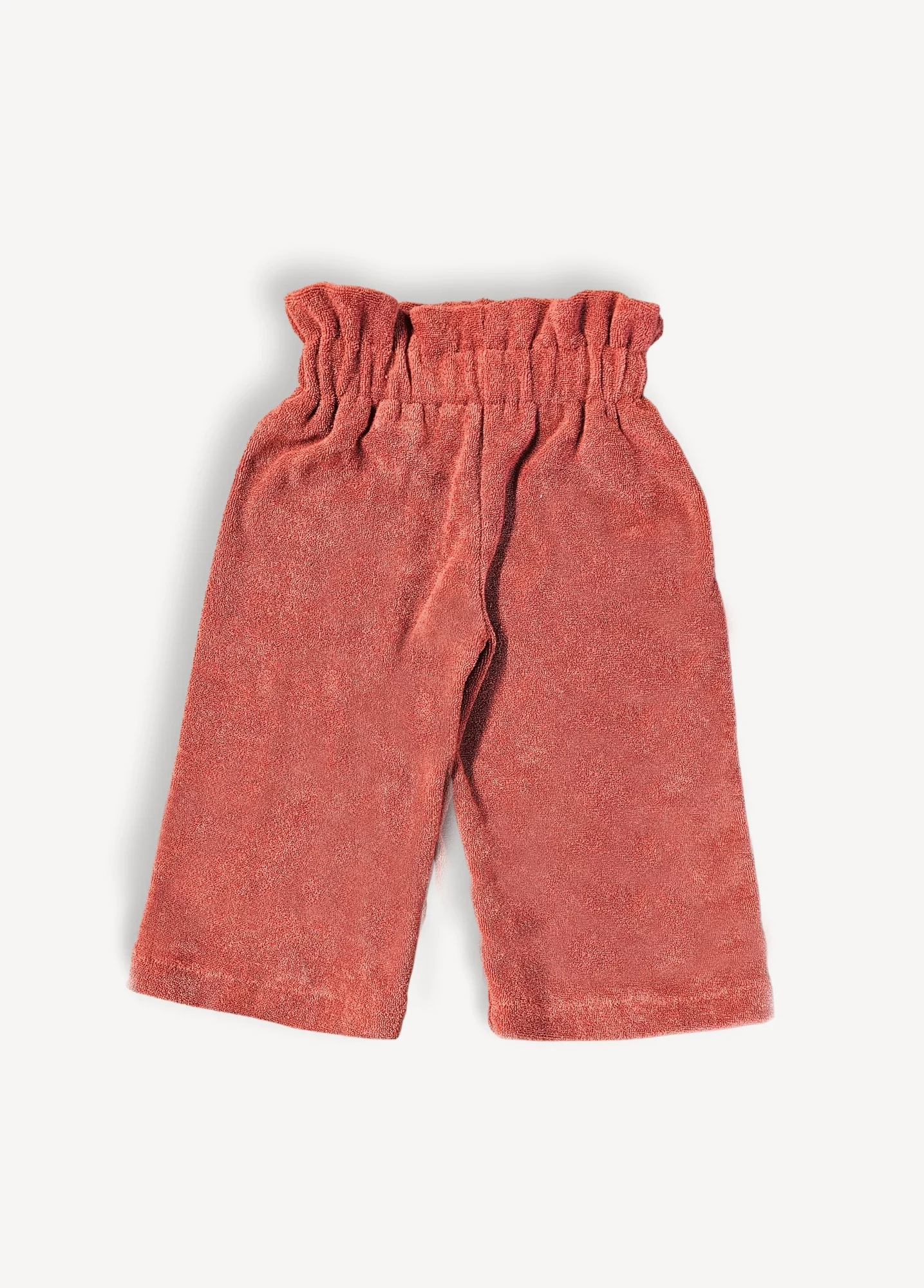 On vous propose un pantalon en éponge brique taille haute, élastique, facile à enfiler et aussi confortable qu’un pyjama, pour explorer le monde en toute circonstance!