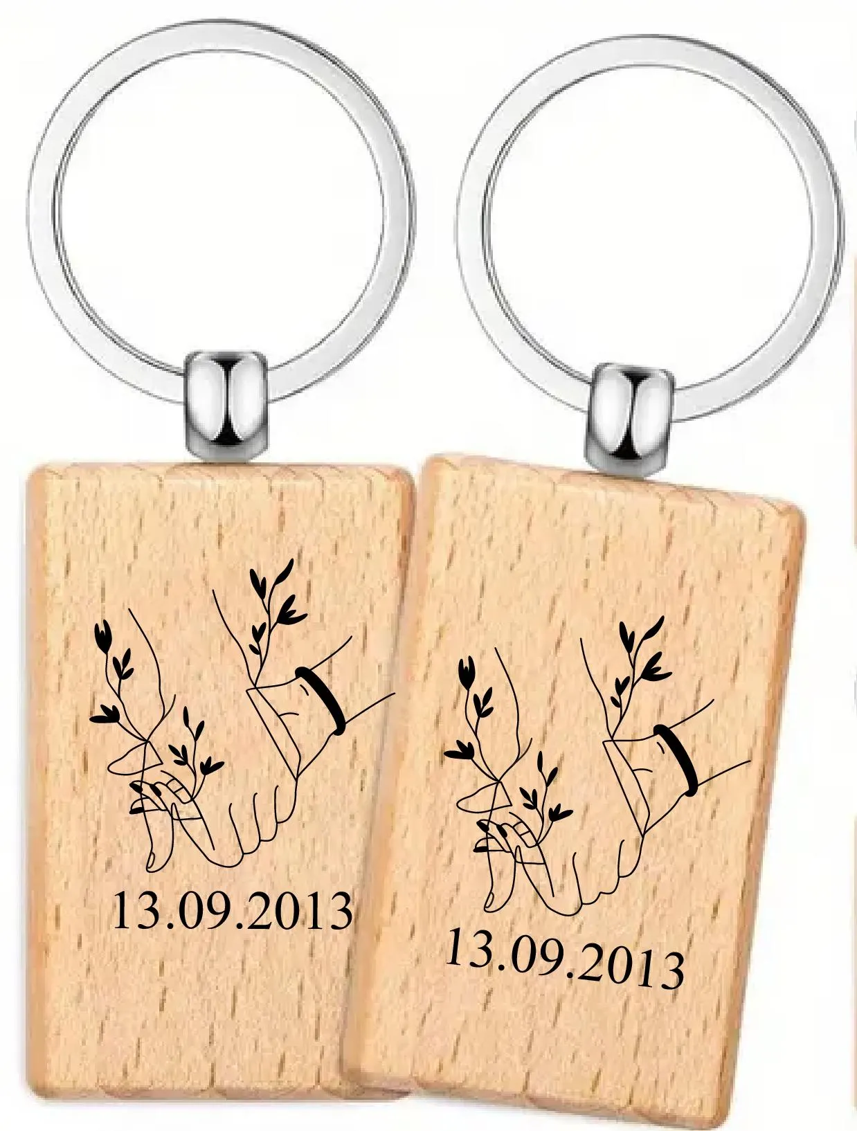 Célébrez votre amour avec ce porte-clé en bois personnalisé, gravé avec deux mains entrelacées symbolisant votre relation, ainsi que la date de votre rencontre. Ce duo de porte-clés est l’idée cadeau parfaite pour la Saint-Valentin, un anniversaire, ou toute autre occasion spéciale. Offrez un cadeau unique et intime qui vous accompagnera partout, avec un design simple, élégant et significatif. Personnalisez-les avec vos prénoms et la date de rencontre pour une touche encore plus personnelle. Un moyen parfait de garder un souvenir tangible de l’amour partagé.