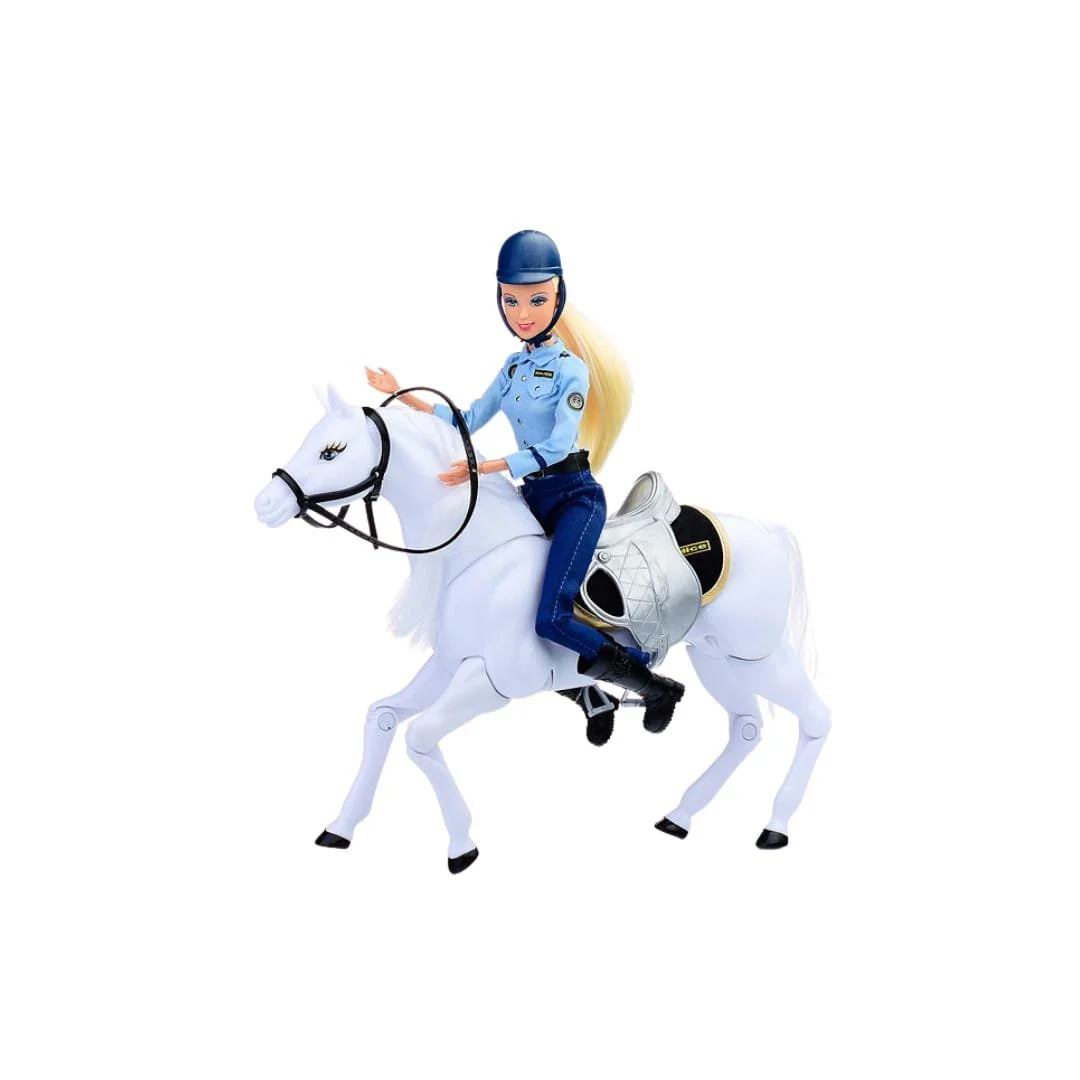 La poupée barbie police avec Cheval Blanc, est un véritable symbole d’ordre public. Son sourire radieux et son expression amicale créent une atmosphère de confiance et de confort.