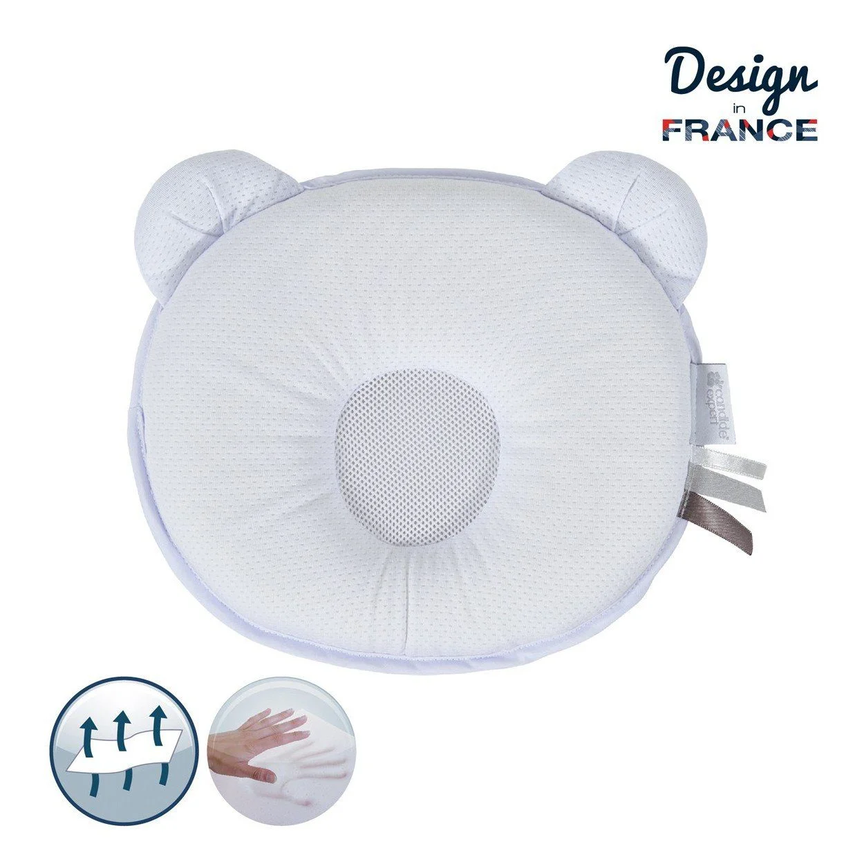 P’tit Panda Air+ Candide est un cale-tête ergonomique permet d’éviter que la tête de votre bébé s’aplatisse.