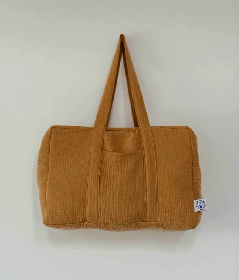 - En double gaze couleur camel certifiée sans substance nocive.
