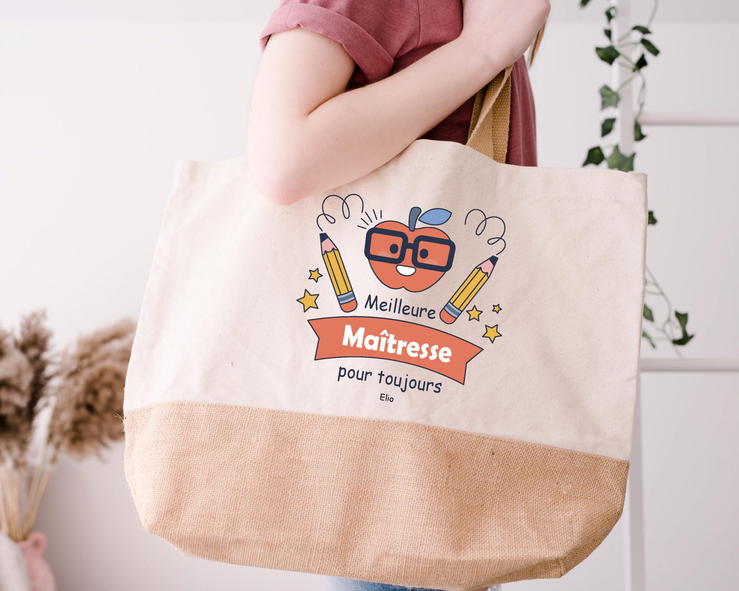Offrez à la maîtresse de votre enfant un cadeau utile, écologique et rempli de tendresse avec ce sac shopping personnalisé !