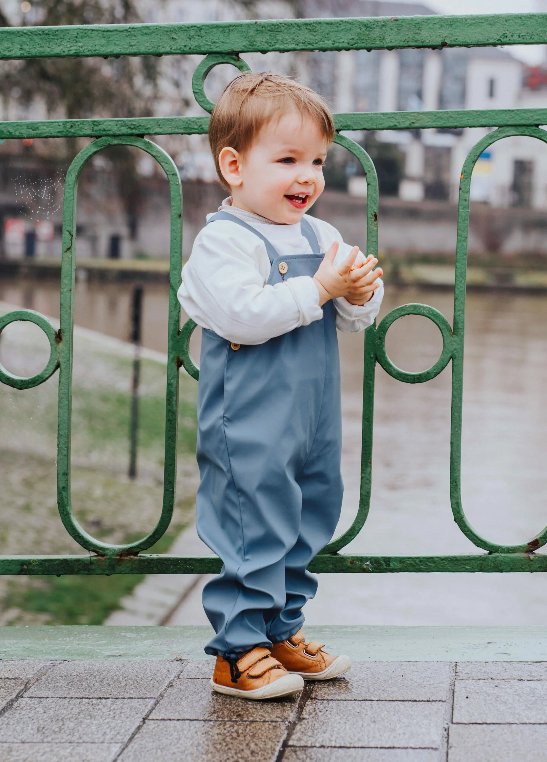 Notre salopette de pluie gris orage est bien plus qu’un simple vêtement. Conçue pour résister aux intempéries, elle se distingue par sa durabilité et son adaptabilité, et est pensée pour accompagner votre enfant durant plusieurs saisons. Dotée de boutons en bois ajustables au niveau des hanches et de bretelles réglables, cette salopette grandit avec votre enfant. Le tissu souple permet à la salopette d’être confortable, qu’elle soit oversized ou ajustée, tandis que le lien de serrage au bas des jambes s’adapte à la longueur pour une protection optimale contre l’eau.