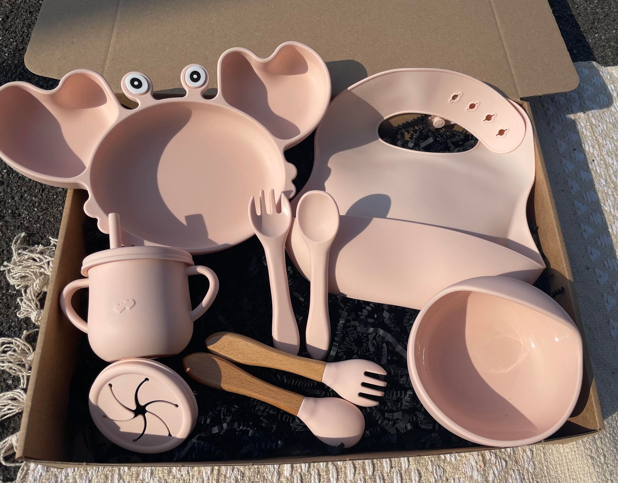 Assiette en forme de crabe avec ventouse 🍽️ : Une assiette adorable en silicone, prenant la forme d’un crabe, avec une ventouse sous la base pour la fixer solidement à la table. Cela évite les accidents et garde l’assiette en place pendant les repas !