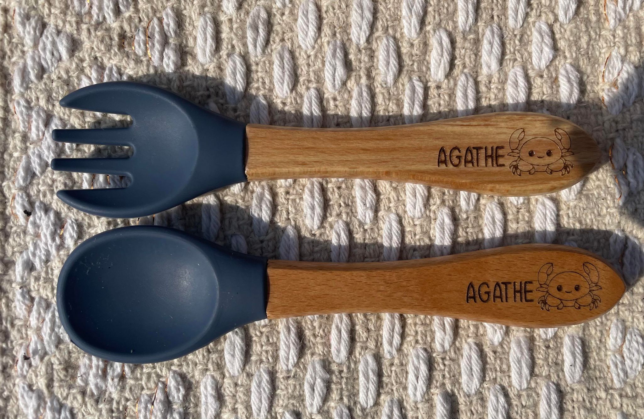 Lot de cuillères avec manche en bois 🍽️ : Ces cuillères au design pratique et naturel ont un manche en bois et une tête en silicone, offrant un confort optimal pour les enfants qui commencent à manger seuls.