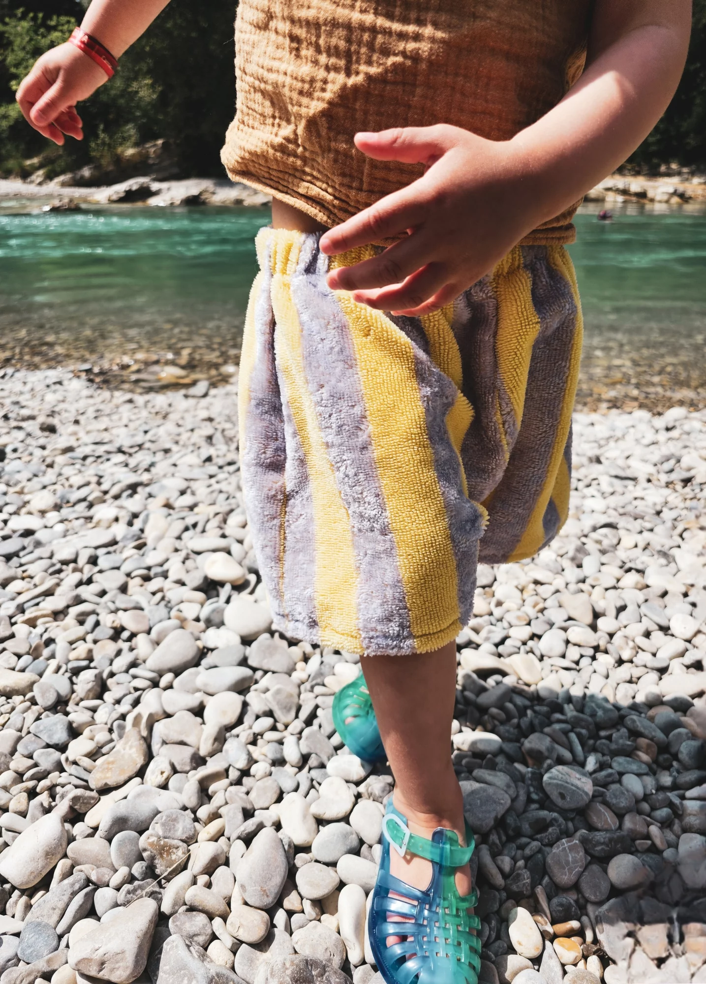 Sa coupe courte et sa taille élastiquée assurent une grande liberté de mouvement et un habillage facile, pour accompagner les enfants dans toutes leurs aventures, de la plage au jardin.