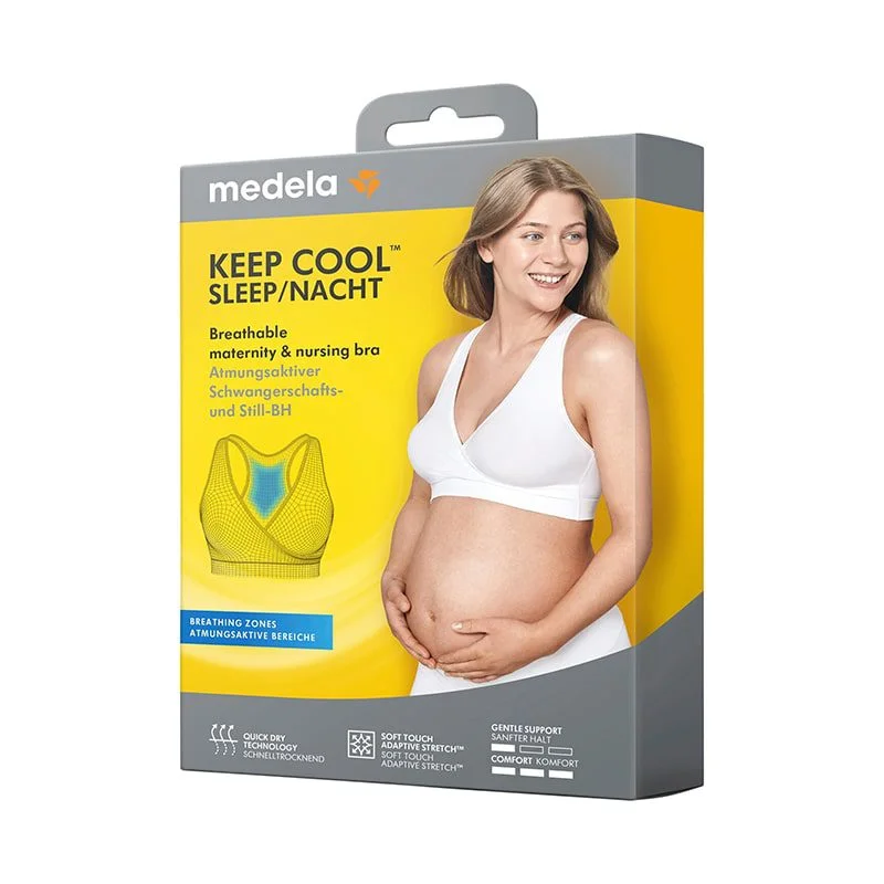 Brassière d’allaitement de nuitAvec sa configuration en cache-coeur, la brassière de nuit de Medela vous offre un soutien doux pendant votre sommeil. Elle assure votre confort nocturne pendant la grossesse et/ou l’allaitement. Son matériau souple et ses propriétés d’absorption de l’humidité maintiennent la fraîcheur du corps. Sa coupe ajustée et confortable maintient les coussinets d’allaitement bien en place et permet d’éviter les fuites nocturnes. Elle assure votre confort nocturne pendant la grossesse et/ou l’allaitement. Disponible en noir et blanc et en tailles S, M et L. |
