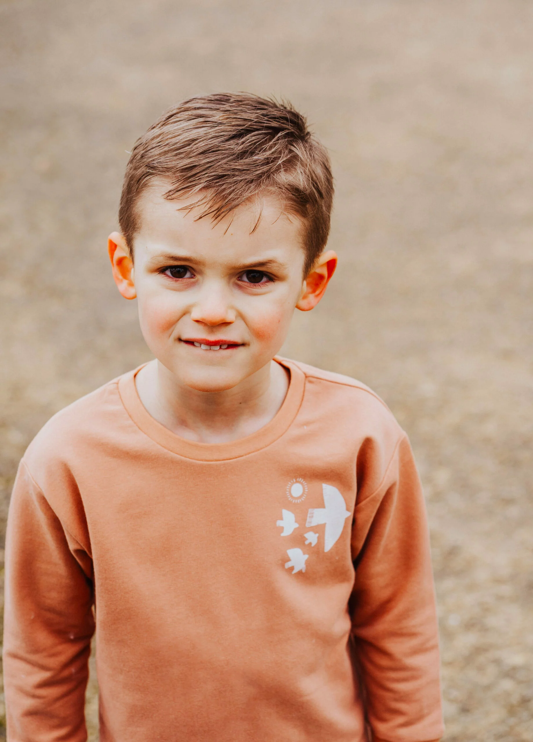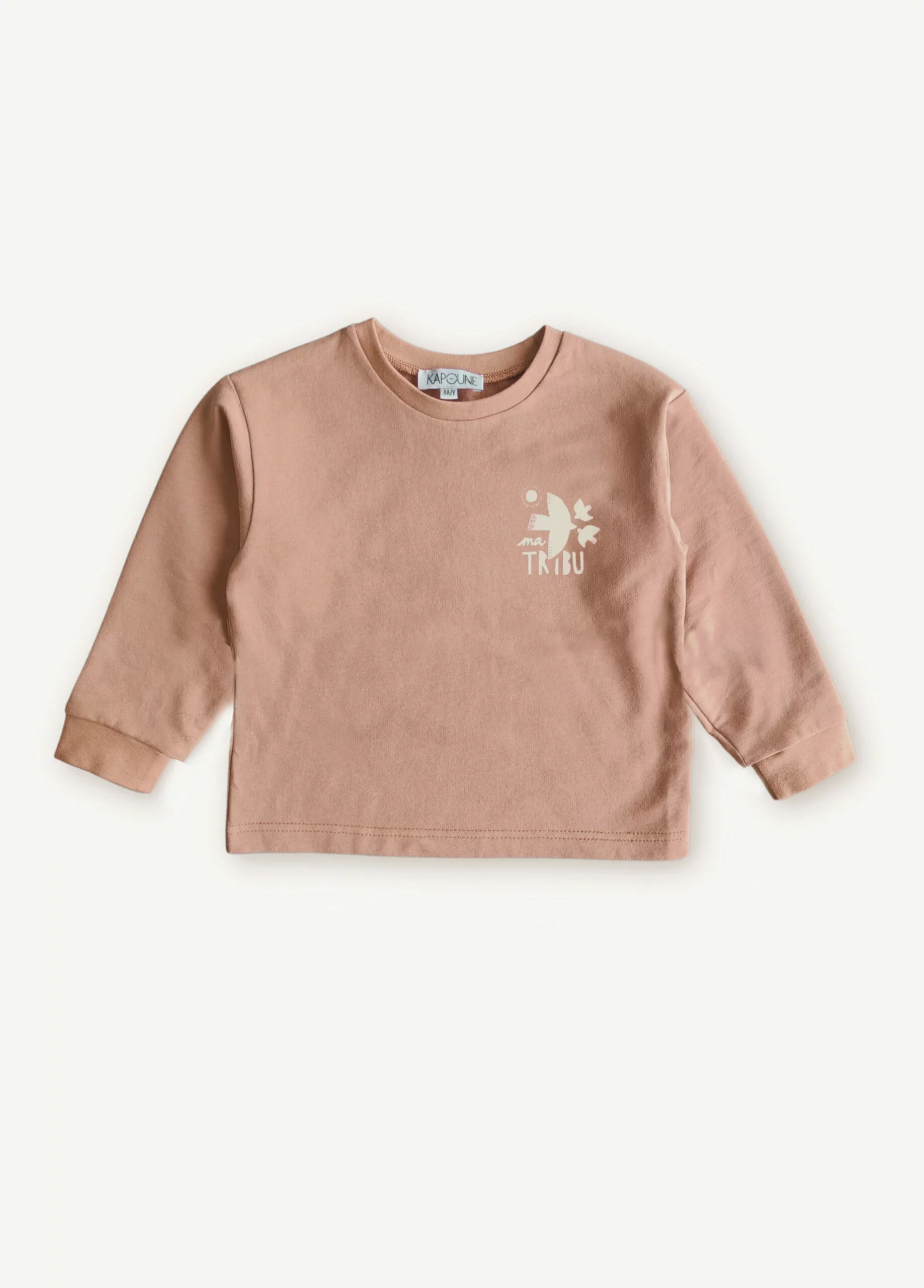 Découvrez notre joli sweat pêche en coton molletonné et son motif ENVOL qui célèbre l’amour!