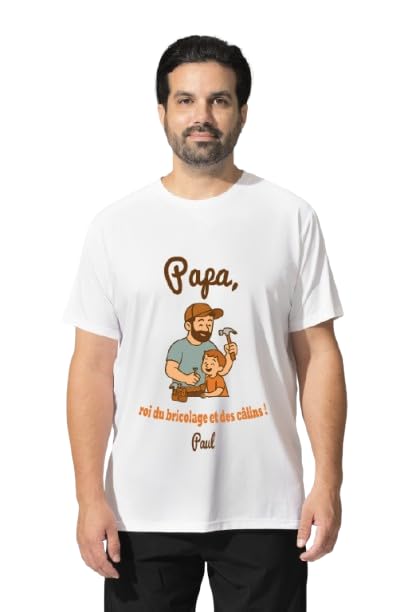Mettez à l’honneur votre papa bricoleur et câlin avec ce T-shirt blanc « Papa, roi du bricolage et des câlins » personnalisé ! Affichant fièrement cette double facette de super papa, ce T-shirt est signé du prénom de votre/vos enfant(s) pour un cadeau encore plus touchant et personnel. Confectionné en 100 % coton doux et léger, il est parfait à porter au quotidien. Disponible en tailles S, M, L, XL et XXL, il s’adapte à toutes les aventures et à tous les câlins ! Un cadeau idéal pour la fête des pères, un anniversaire, ou simplement pour dire « merci papa » de la plus jolie des façons !