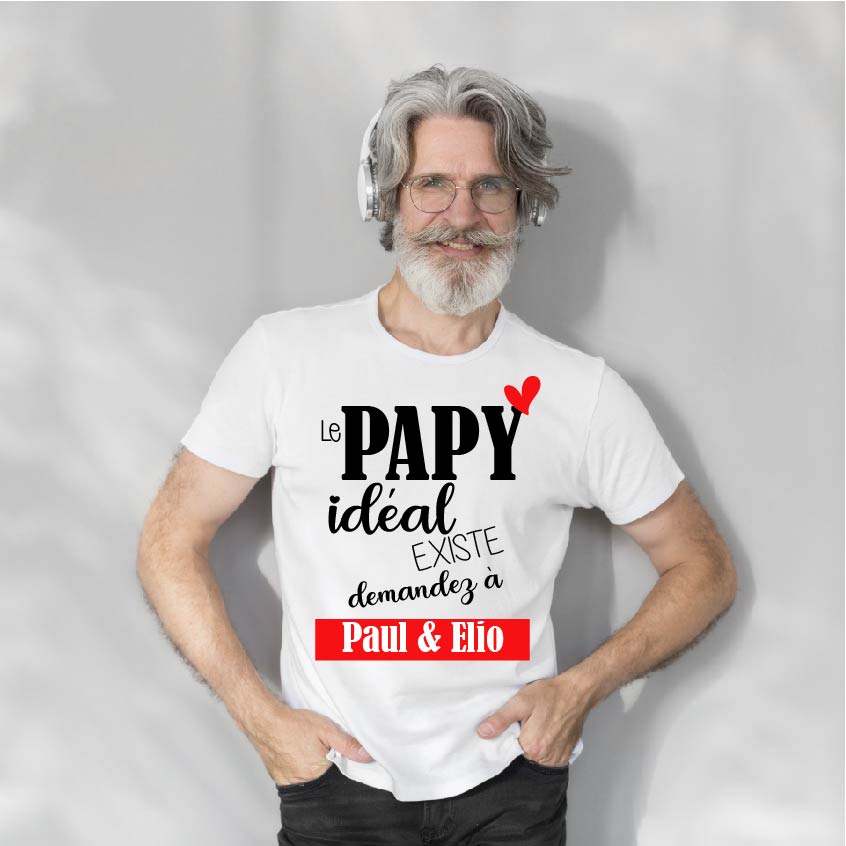 Bébé panda vous propose ce T-shirt personnalisé pour votre Papy
