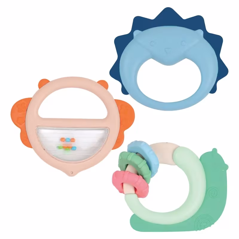 - Stimulation sensorielle : les hochets présentent des couleurs vives et des textures variées pour attirer l’attention de bébé et stimuler ses sens visuels et tactiles.