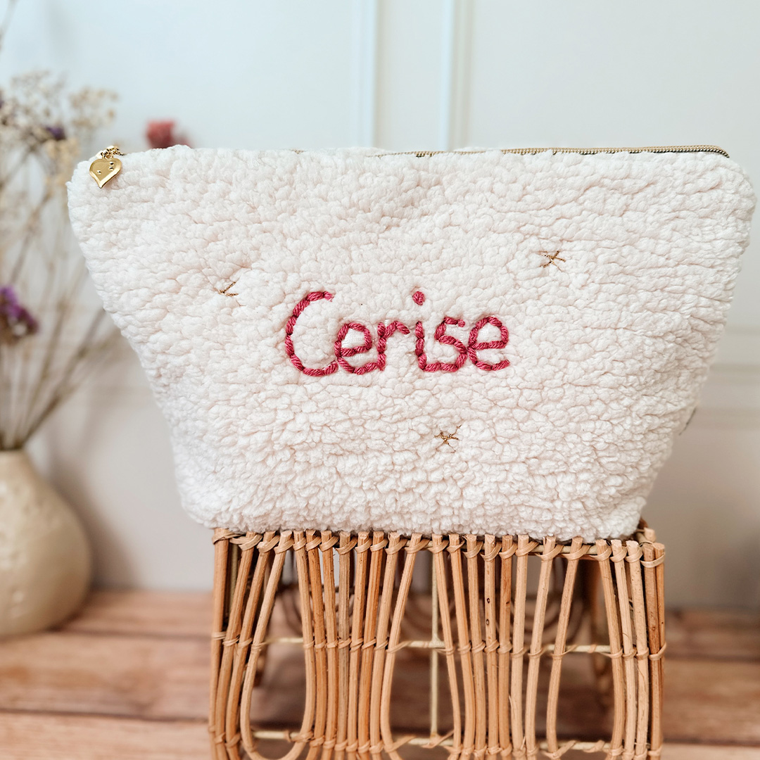 Trousse de toilette sherpa beige personnalisée – Made in France