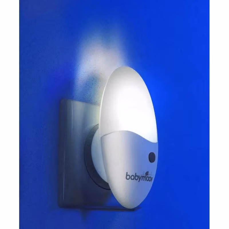 Veilleuse murale LED Eco-consommation – Babymoov, très pratique s’adaptera sur toutes les prises grâce à une rotation à 90° de sa fiche.