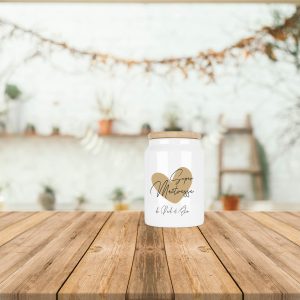 Offrez un cadeau unique à une marraine formidable avec ce verre à cocktail givré élégant et raffiné. Ce verre est muni d’un bouchon en bois et d’une paille réutilisable, parfait pour siroter ses boissons préférées avec style ! L’inscription « Marraine formidable de » suivie du prénom de l’enfant et accompagnée d’une délicate fleur noire en fait un objet aussi pratique que symbolique.