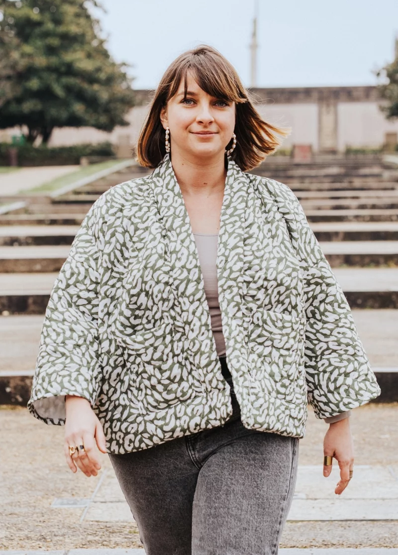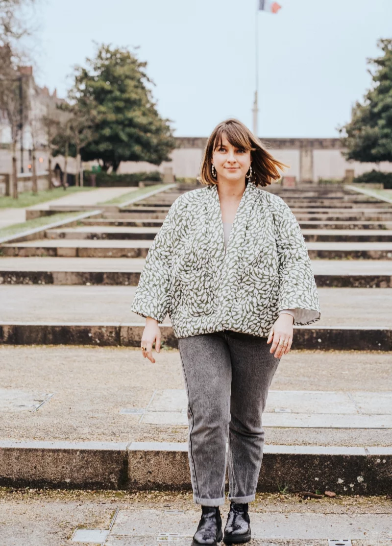Parce que nous souhaitons vous proposer des vêtements éthiques et durables, la veste femme kimono est produite en France avec un tissu certifié. En effet c’est à Nantes, dans notre atelier que la veste est conçue, en collaboration avec une couturière indépendante. Le choix de la fabrication française est une nécessité pour nous, car nous souhaitons un vêtement produit dans de bonnes conditions, respectant l’homme et l’environnement.