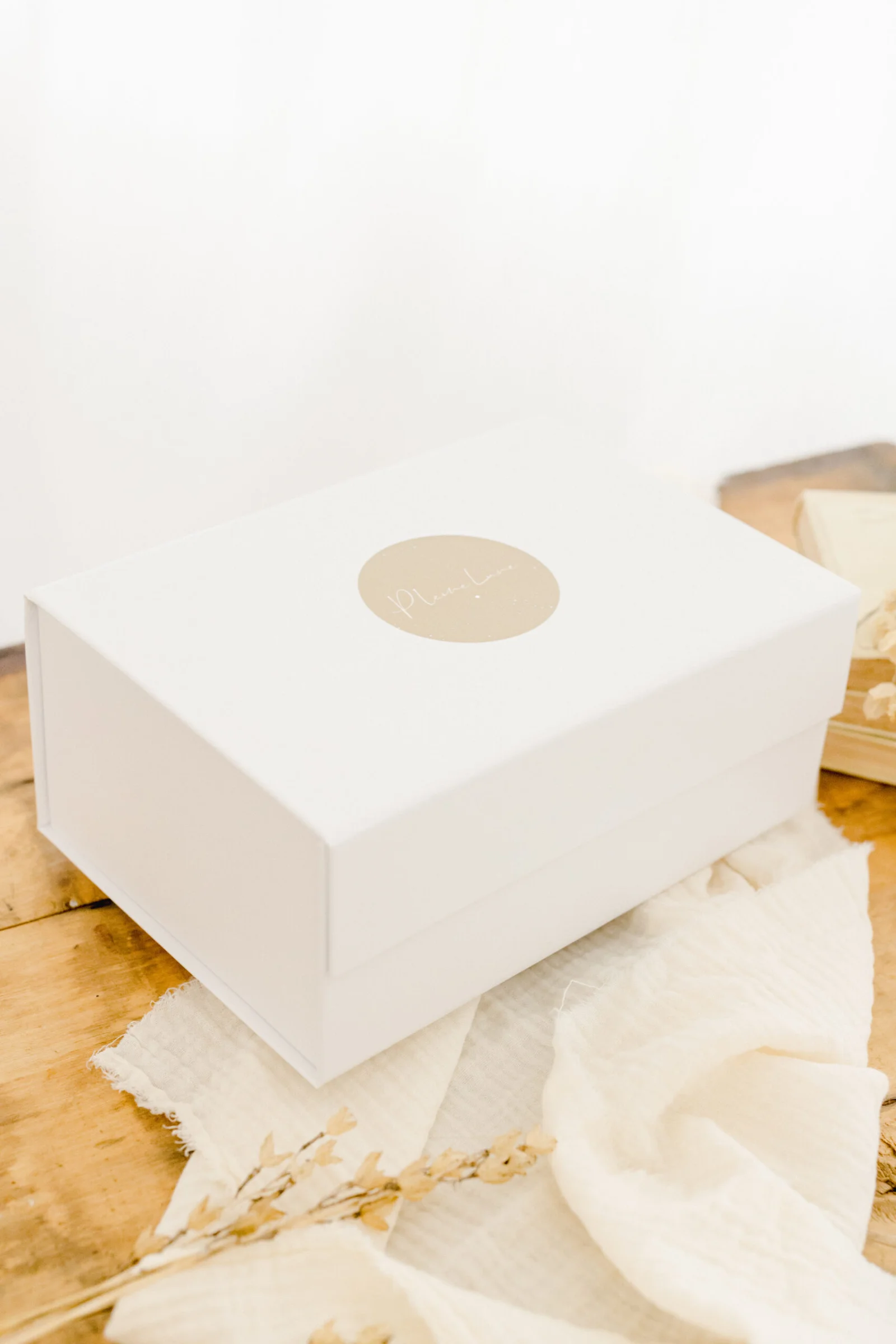 Composez votre coffret avec les produits de votre choix. Pour 3 produits* ou plus achetés nous vous offrons un joli coffret souvenir d’une valeur de 19 euros. Ce coffret prêt à offrir pourra être réutilisé par les jeunes parents pour y déposer les merveilleux souvenirs de bébé (bracelet de naissance, petits chaussons tricotés, album de sa première année, etc).
